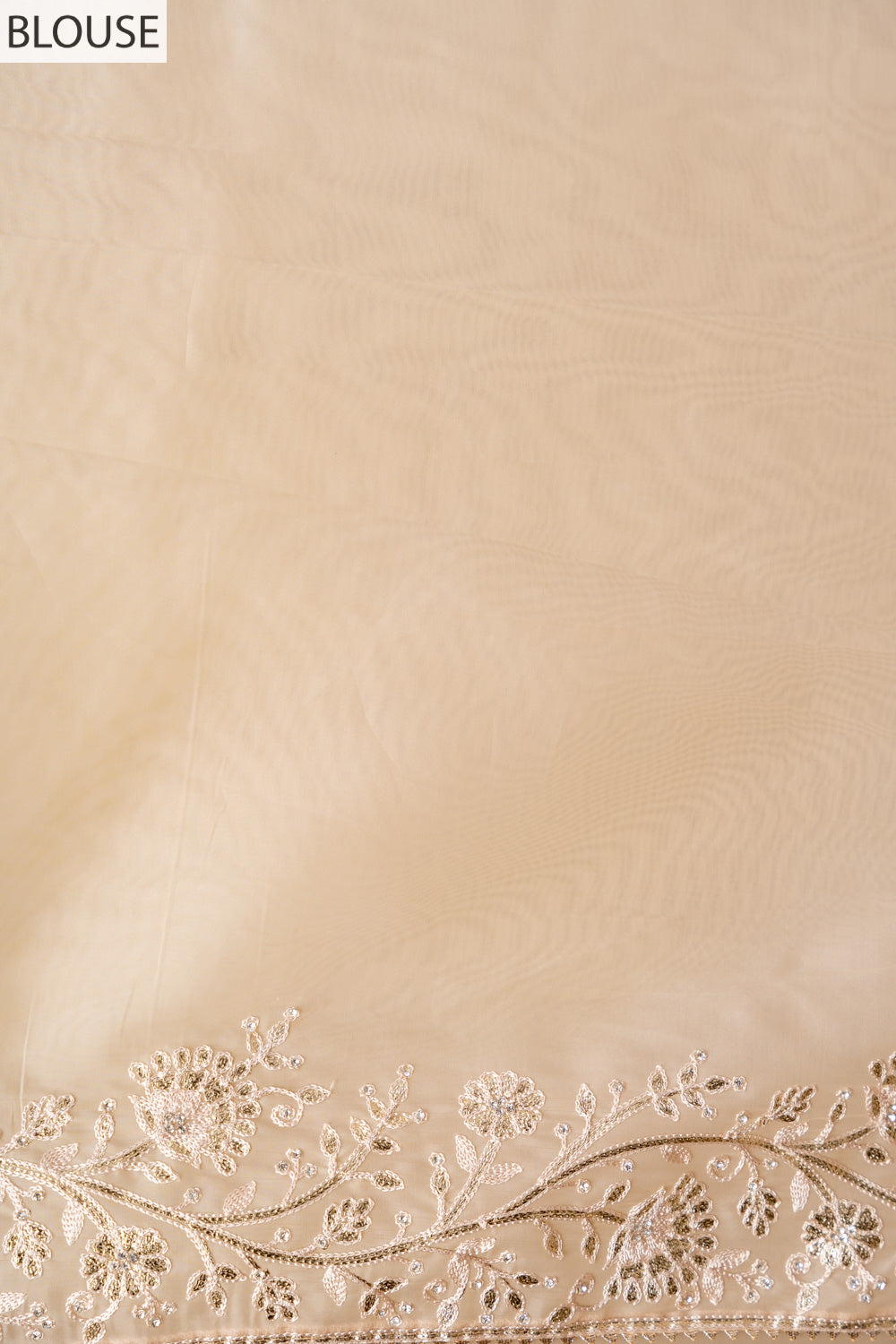 Step into elegance with this luxurious Organza Saree. The saree is heavily adorned with Intricate Silver Zari Embroidery Richly designed pallu is embellished with dense Floral embroidery, making it the highlight of the saree, and regal appeal—perfect for weddings, receptions, engagement parties, cocktail evenings, and festive celebrations.