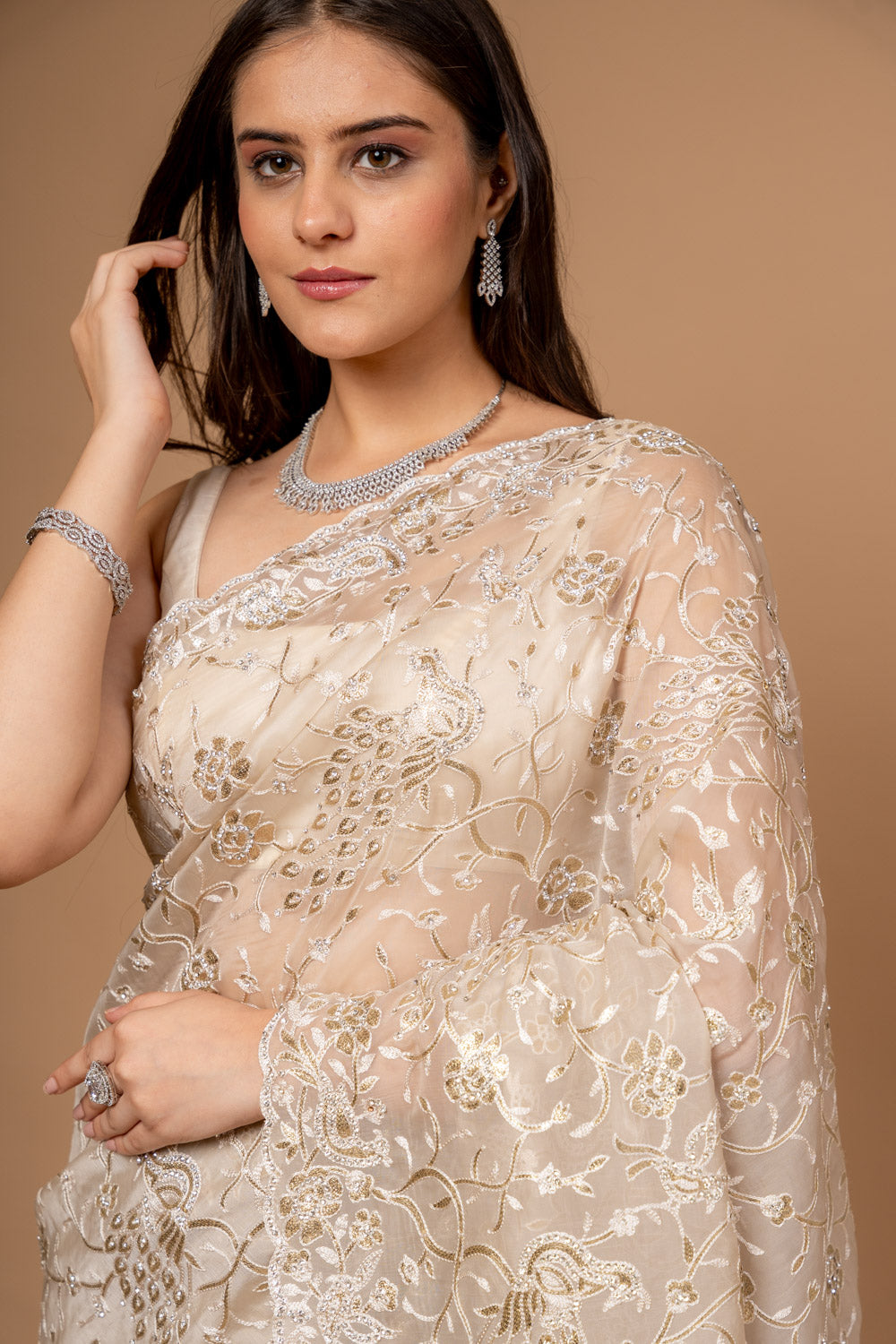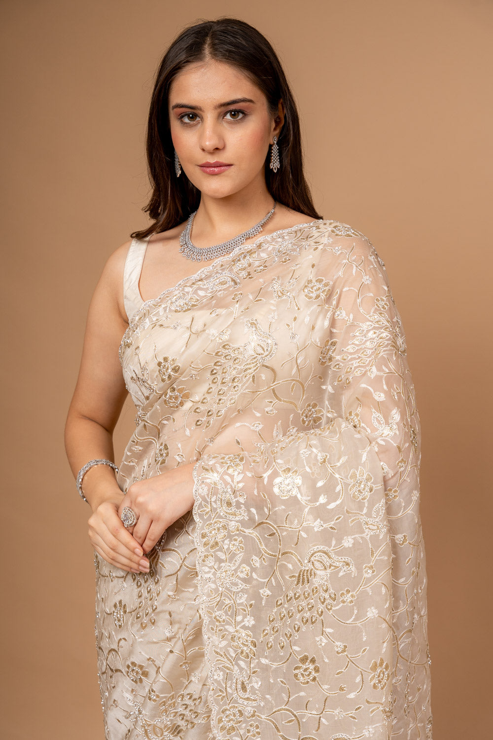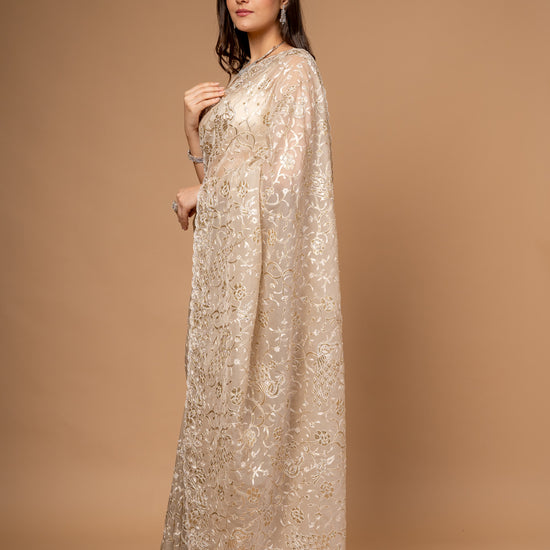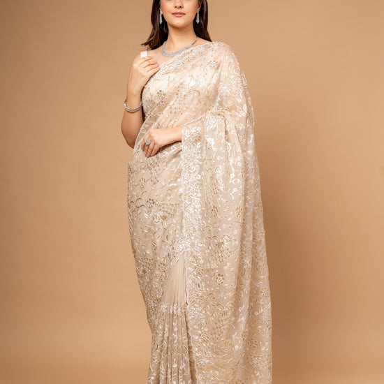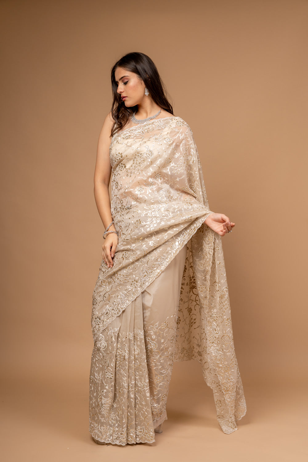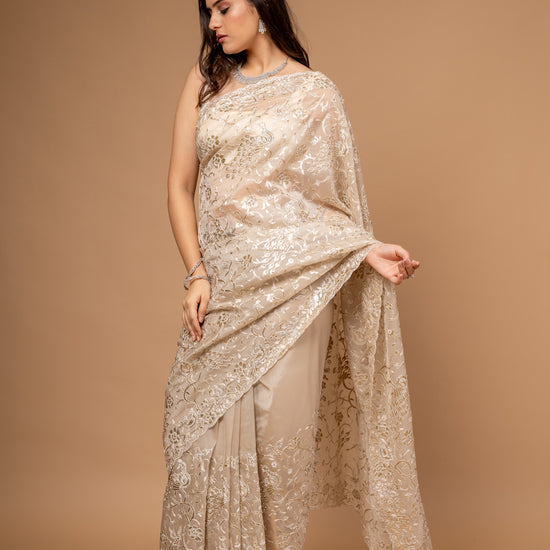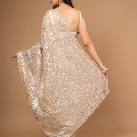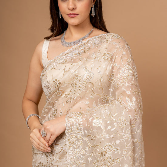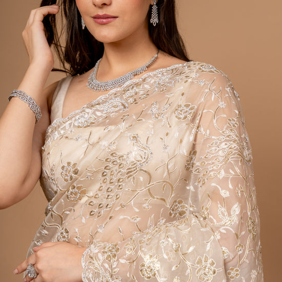 | SilverEmbroidery | FestiveFashion | IndianEthnicWear | PartyWearSaree | TussarOrganzaSaree | EthnicWear | FestiveOccasions |