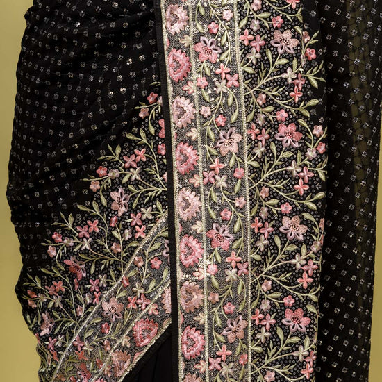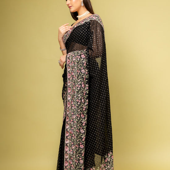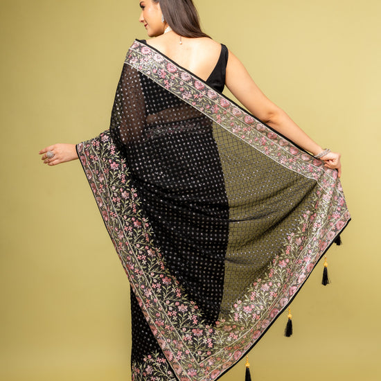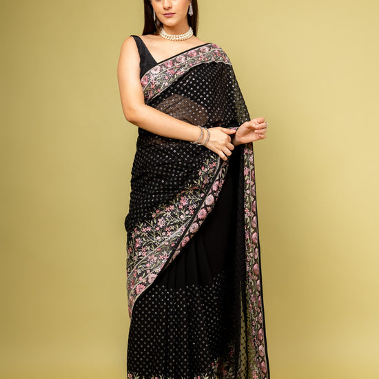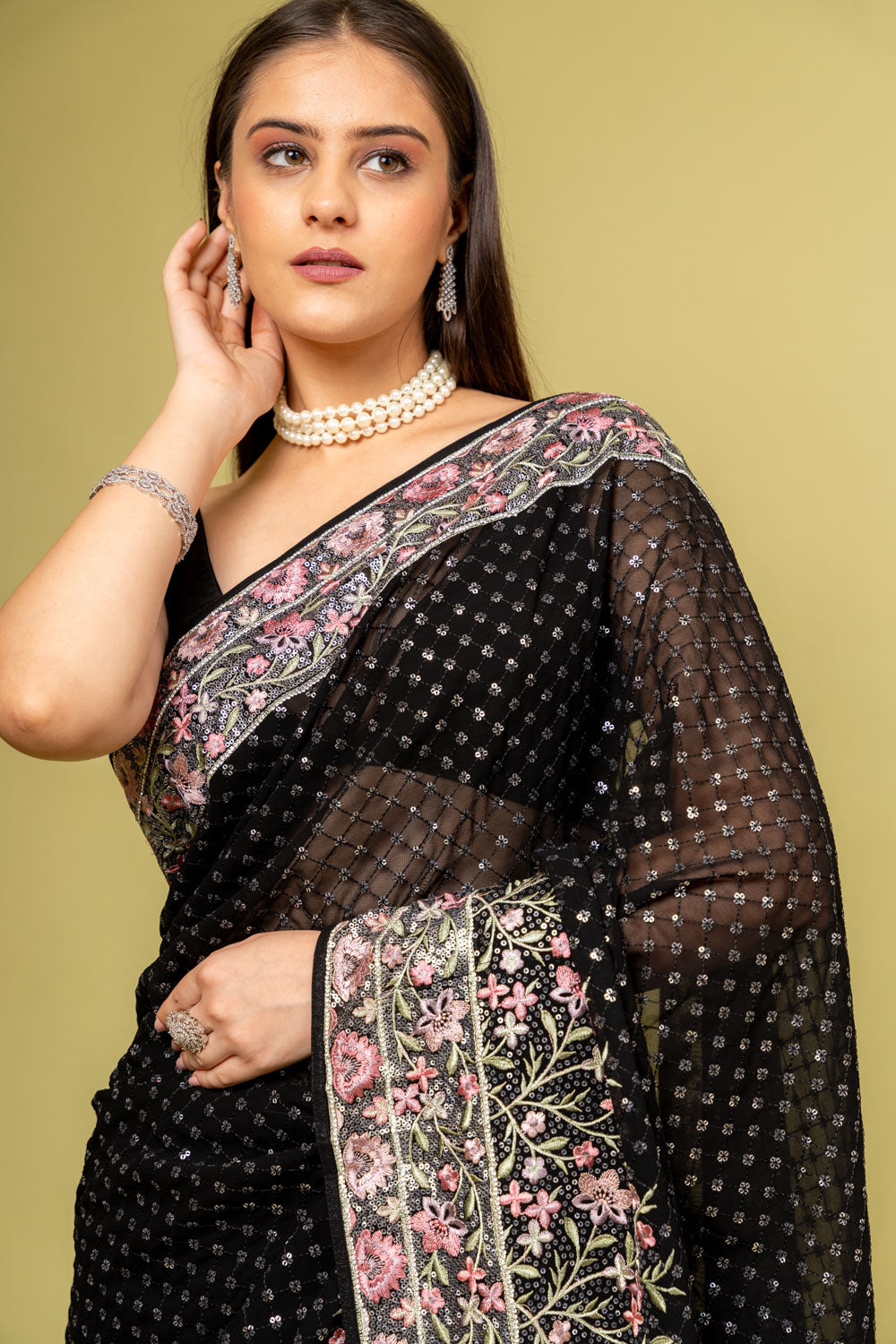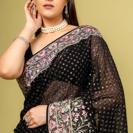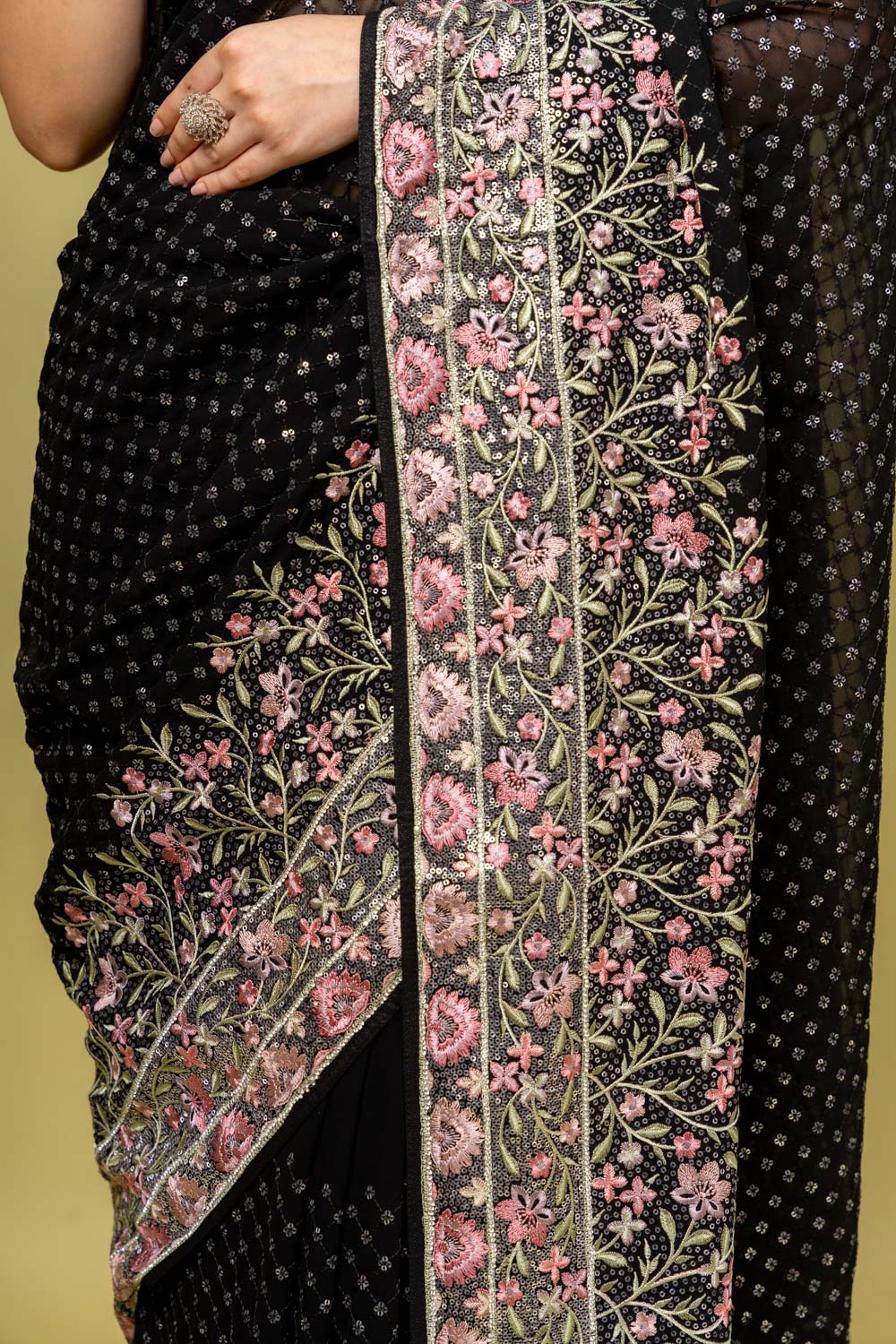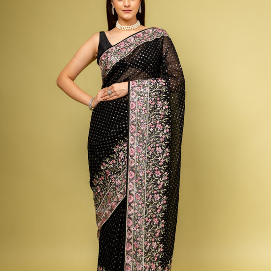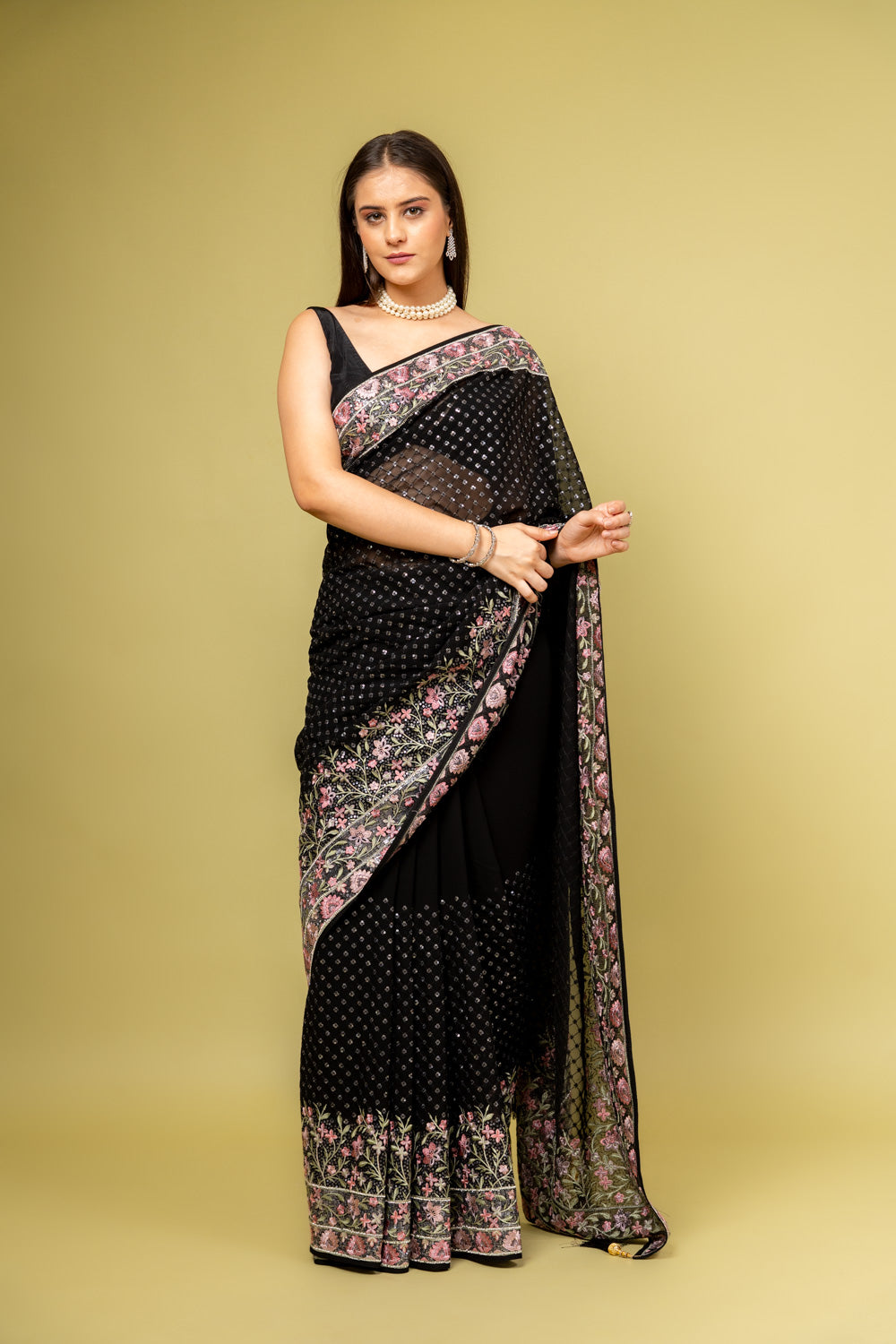 Bold Statement Black Organza Saree With Unstitched Blouse – The Panna Shop