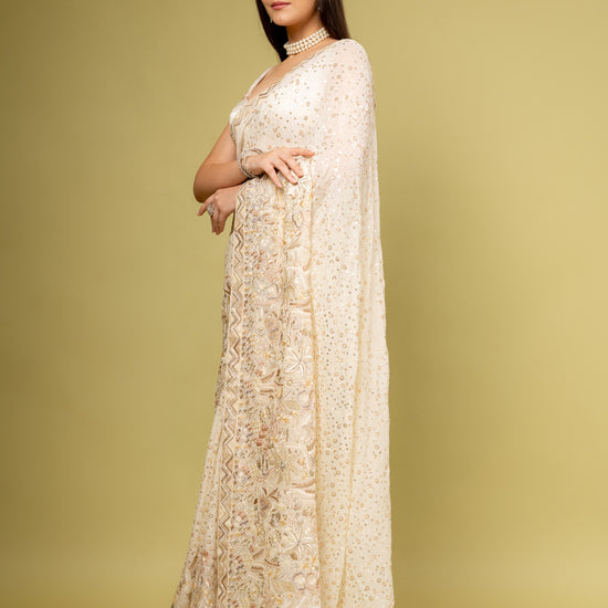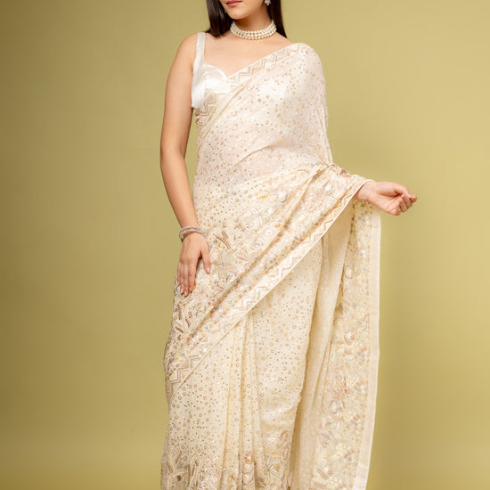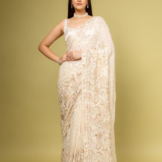 Panna Effortlessly Off White Georgette Saree With Unstitched Blouse