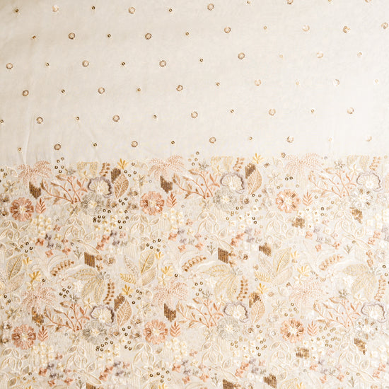 Step into elegance with this luxurious Georgette Saree. The saree is heavily adorned with Intricate Golden Zari Embroidery Richly designed pallu is embellished with dense Floral embroidery, making it the highlight of the saree, and regal appeal—perfect for weddings, receptions, engagement parties, cocktail evenings, and festive celebrations.