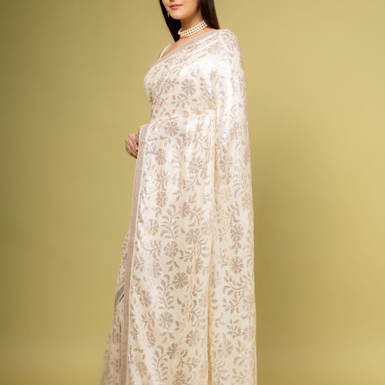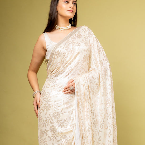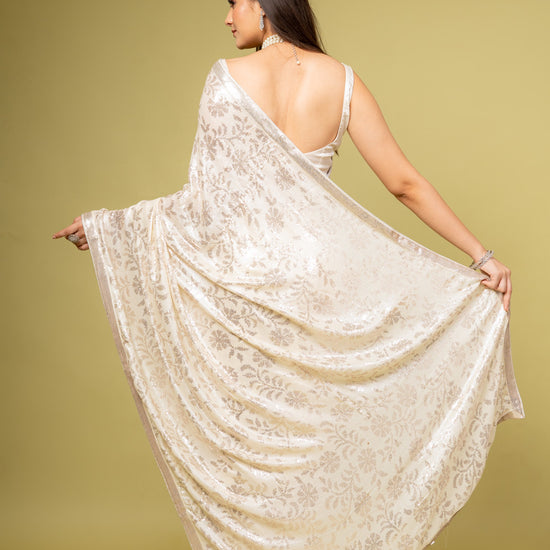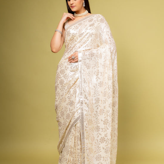 | SilverEmbroidery | FestiveFashion | IndianEthnicWear | PartyWearSaree | GeorgetteSaree | EthnicWear | FestiveOccasions | EffortlesslyBeautifulOffWhite |