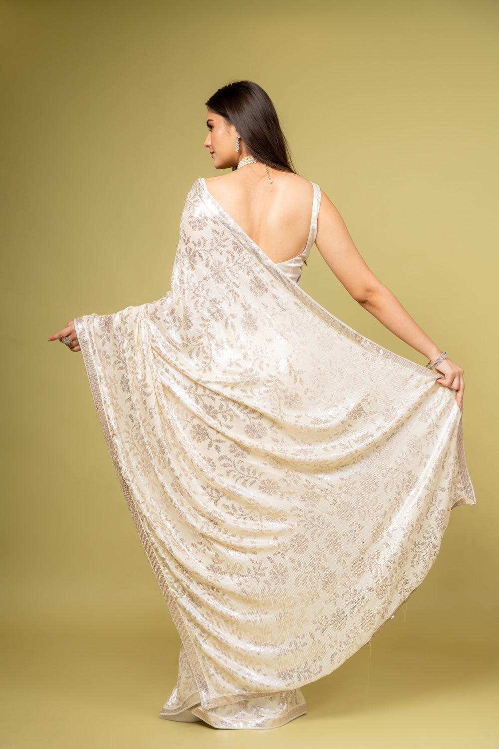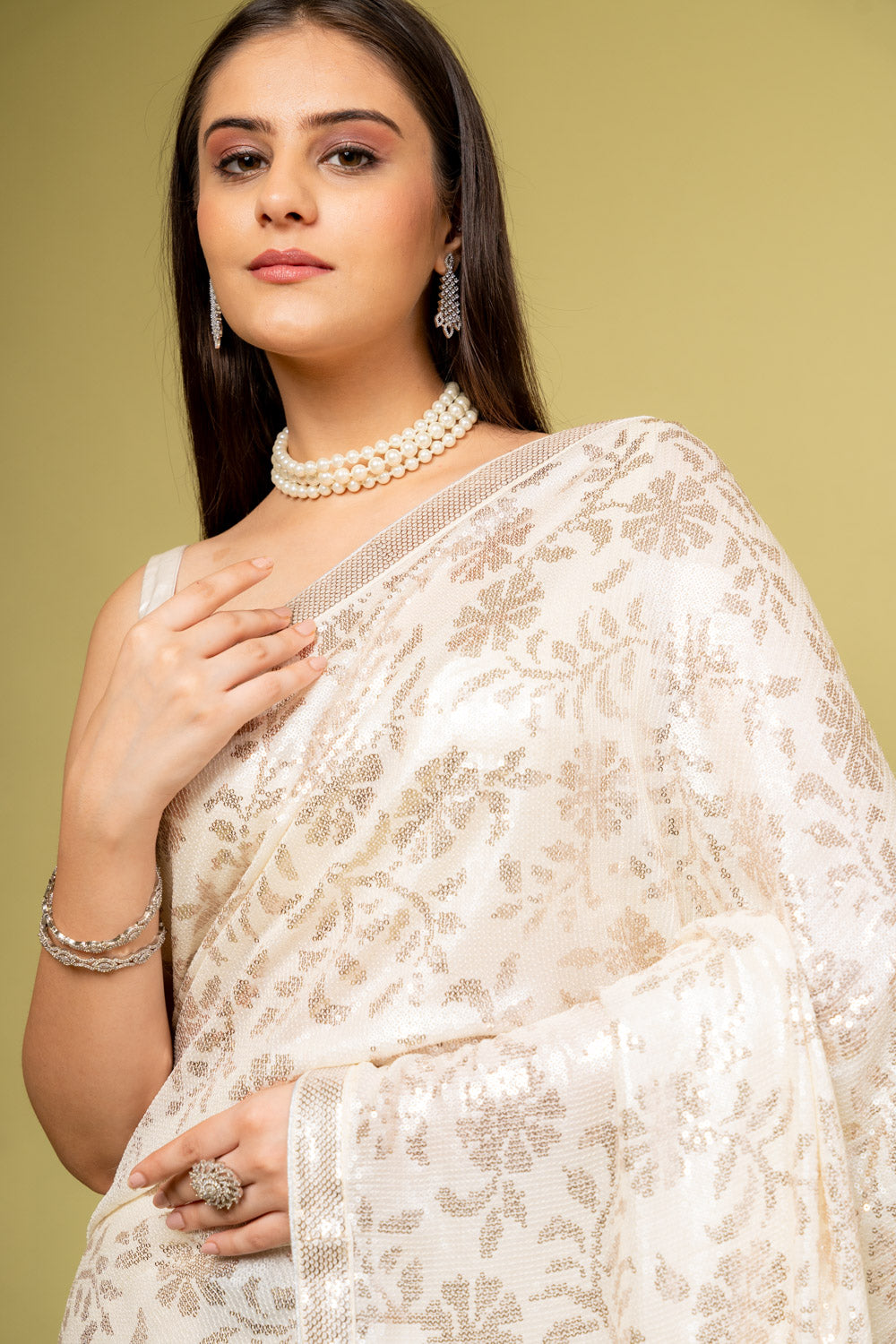 Pair with kundan or pearl jewelry for a royal look