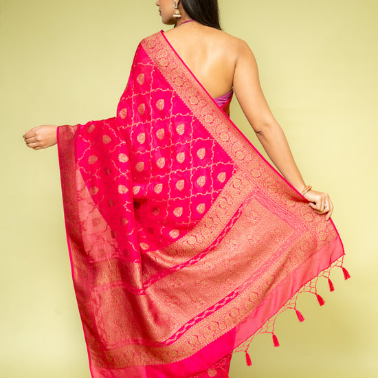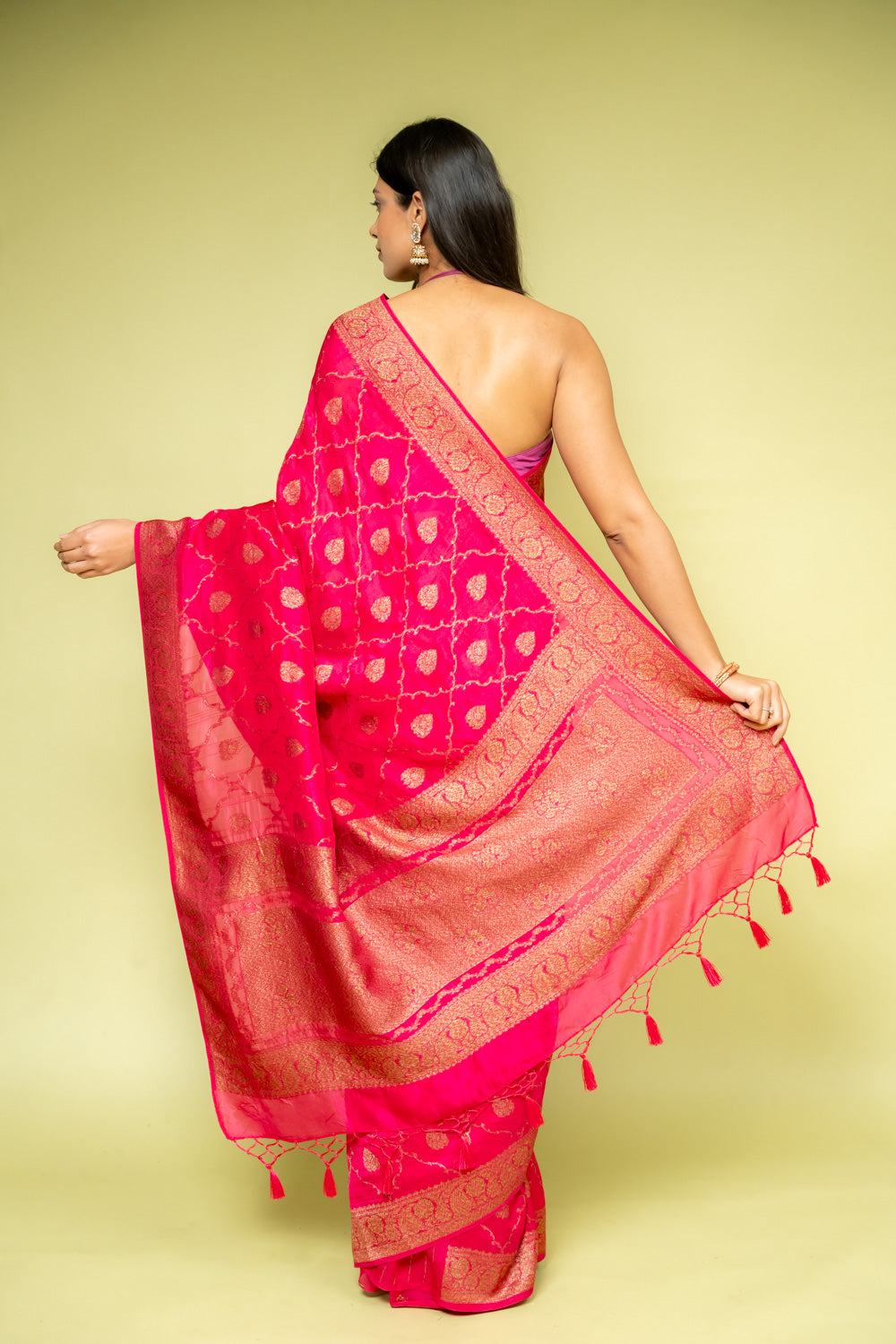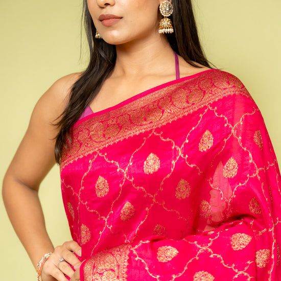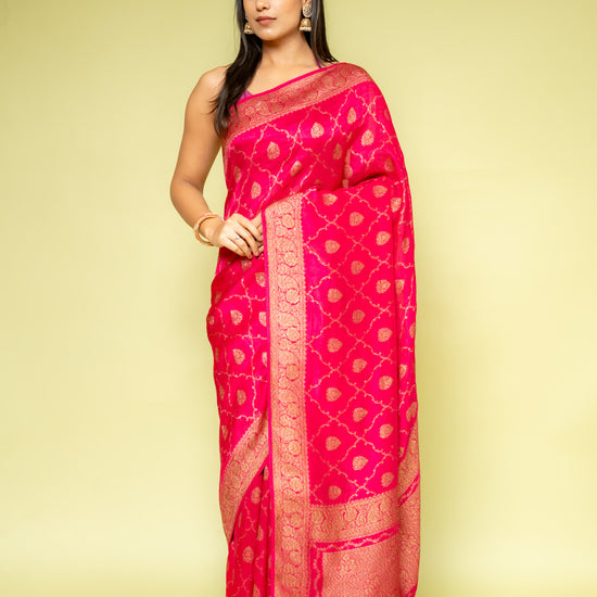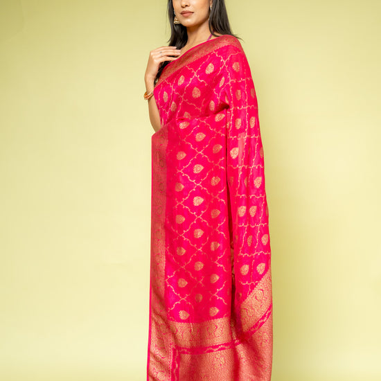 Rani Banarasi Silk Saree With Unstitched Blouse – The Panna Shop