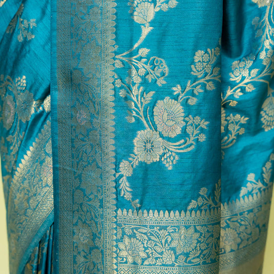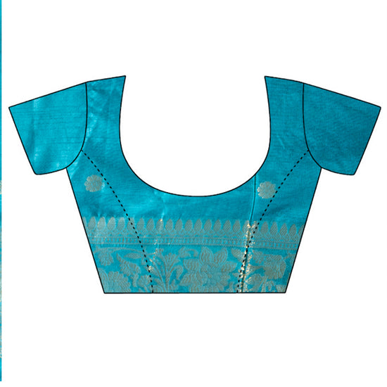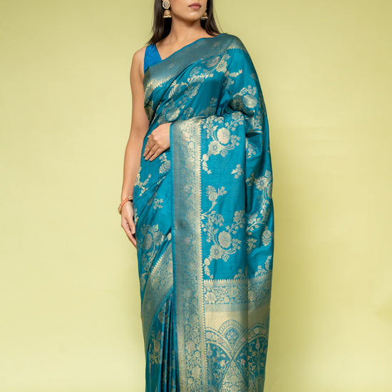 Panna Peacock Banarasi Silk Saree With Unstitched Blouse