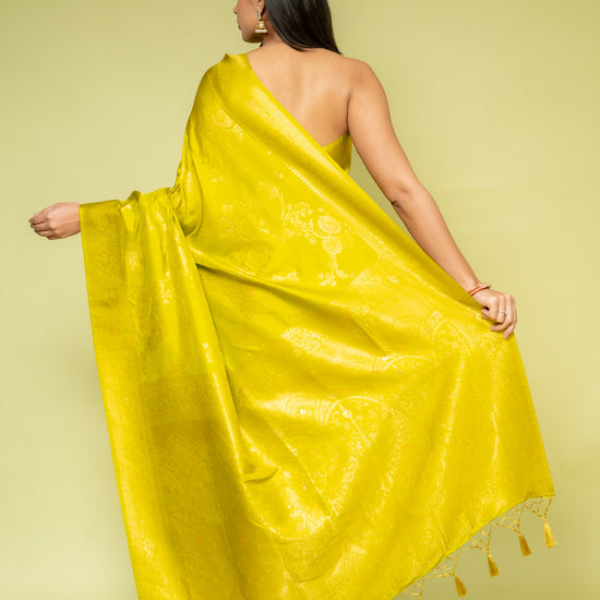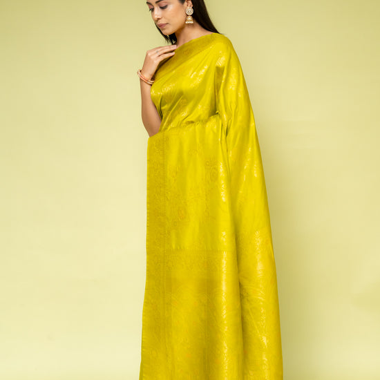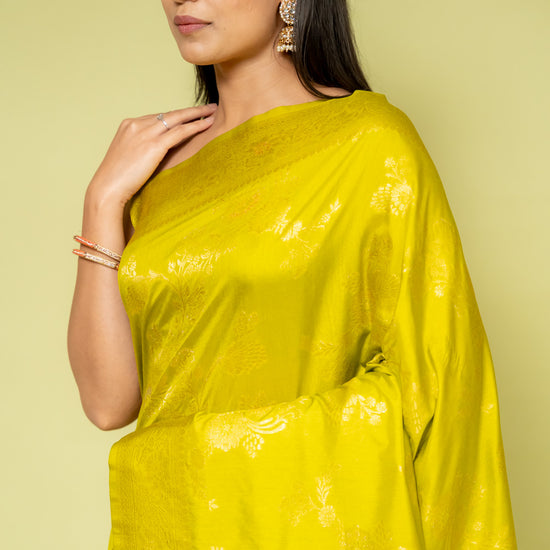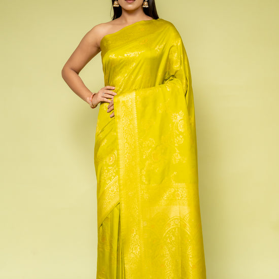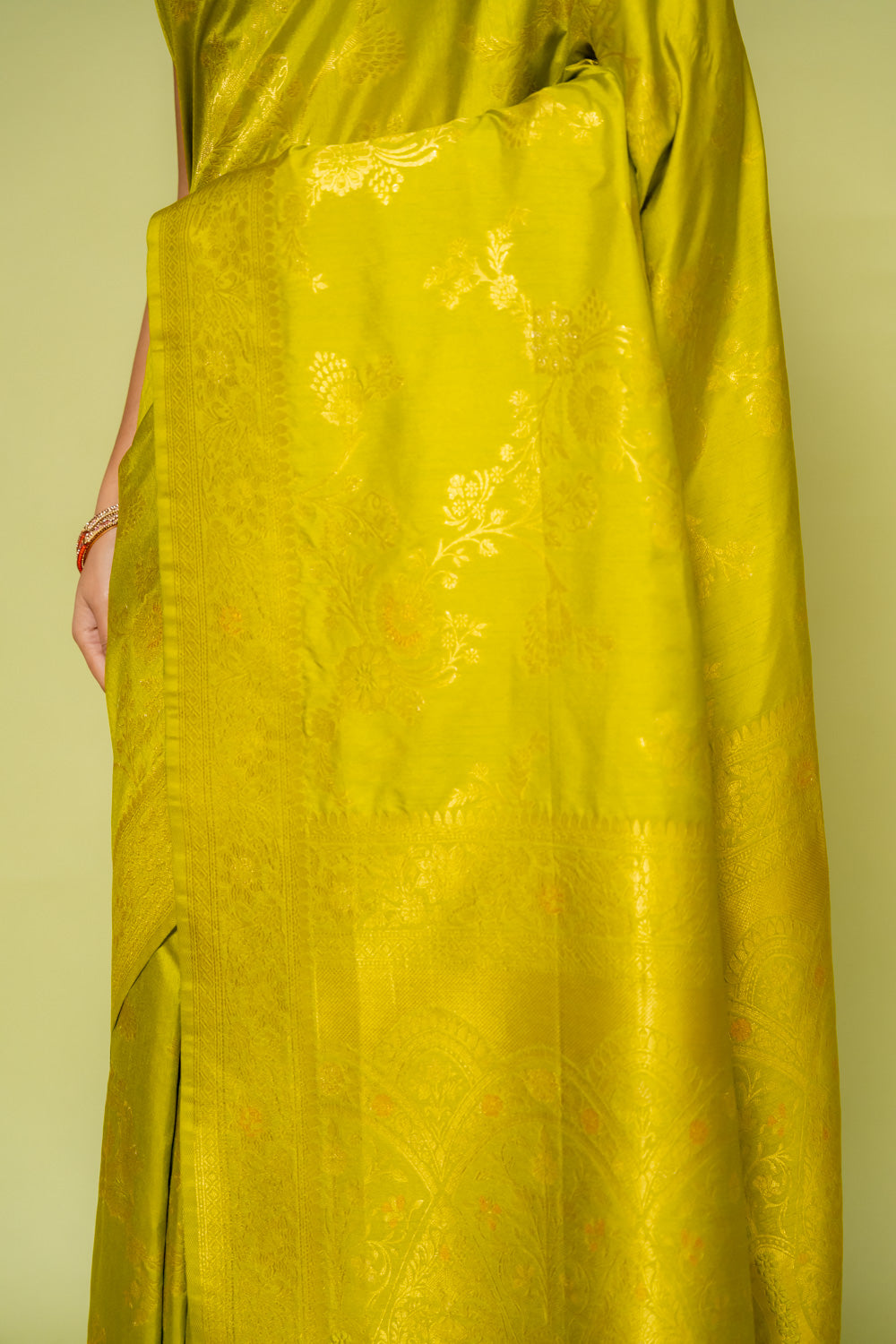 Panna Pista Banarasi Silk Saree With Unstitched Blouse