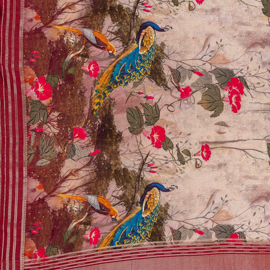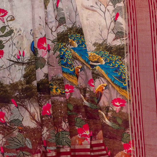 Panna Tussar Sequence, Woven Zari & Digital Printed Muslin Saree With Unstitched Blouse