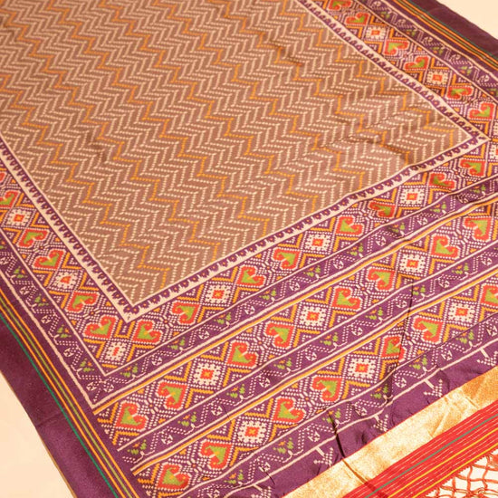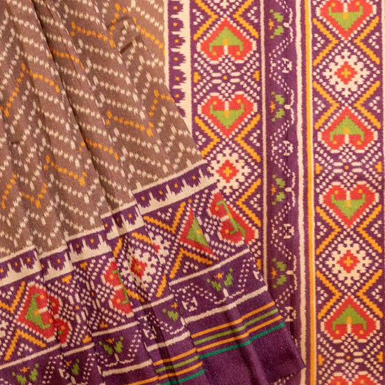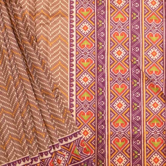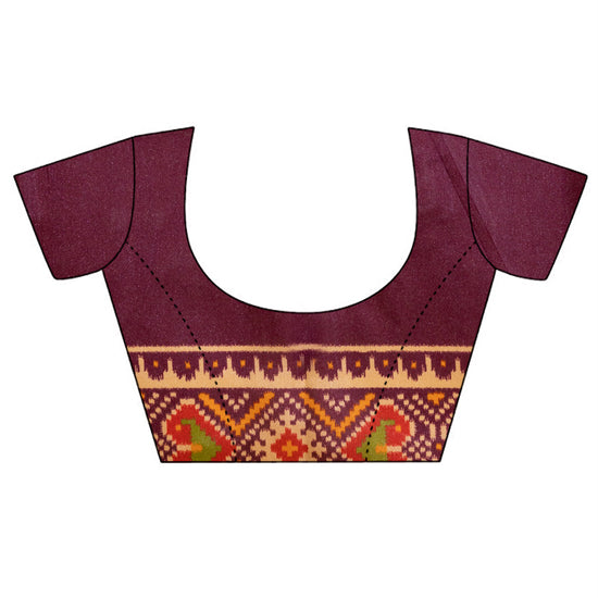 Panna Brown Wine Banarasi Silk Gujarat Patola Block Printed Saree With Unstitched Blouse
