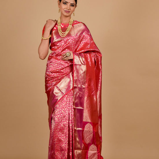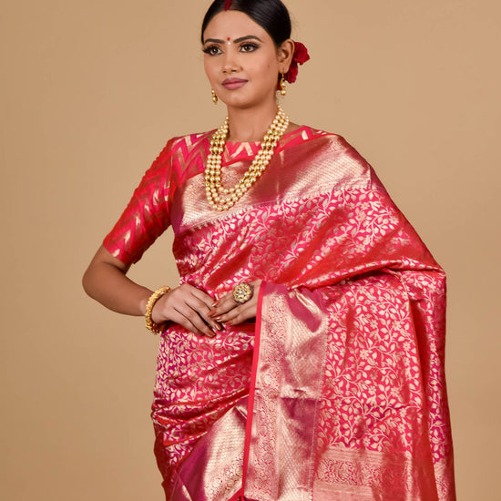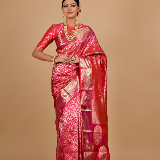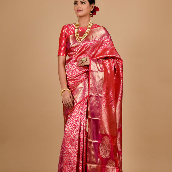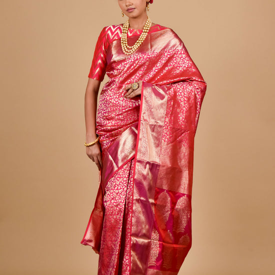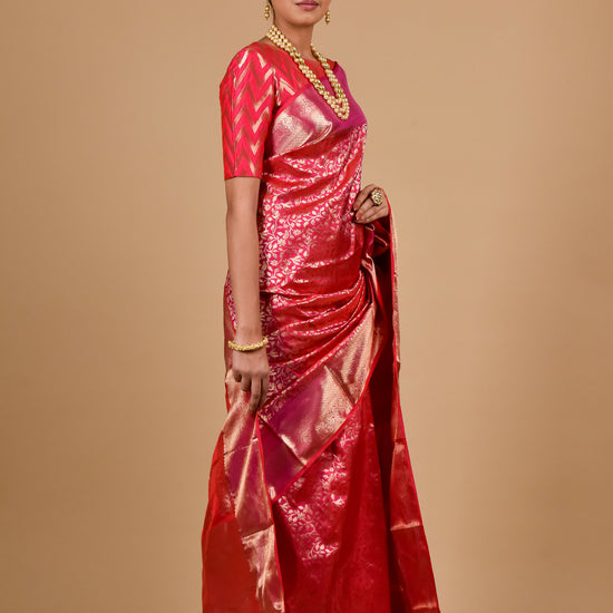 Panna Coral Woven Zari South Indian Silk Saree With Unstitched Blouse