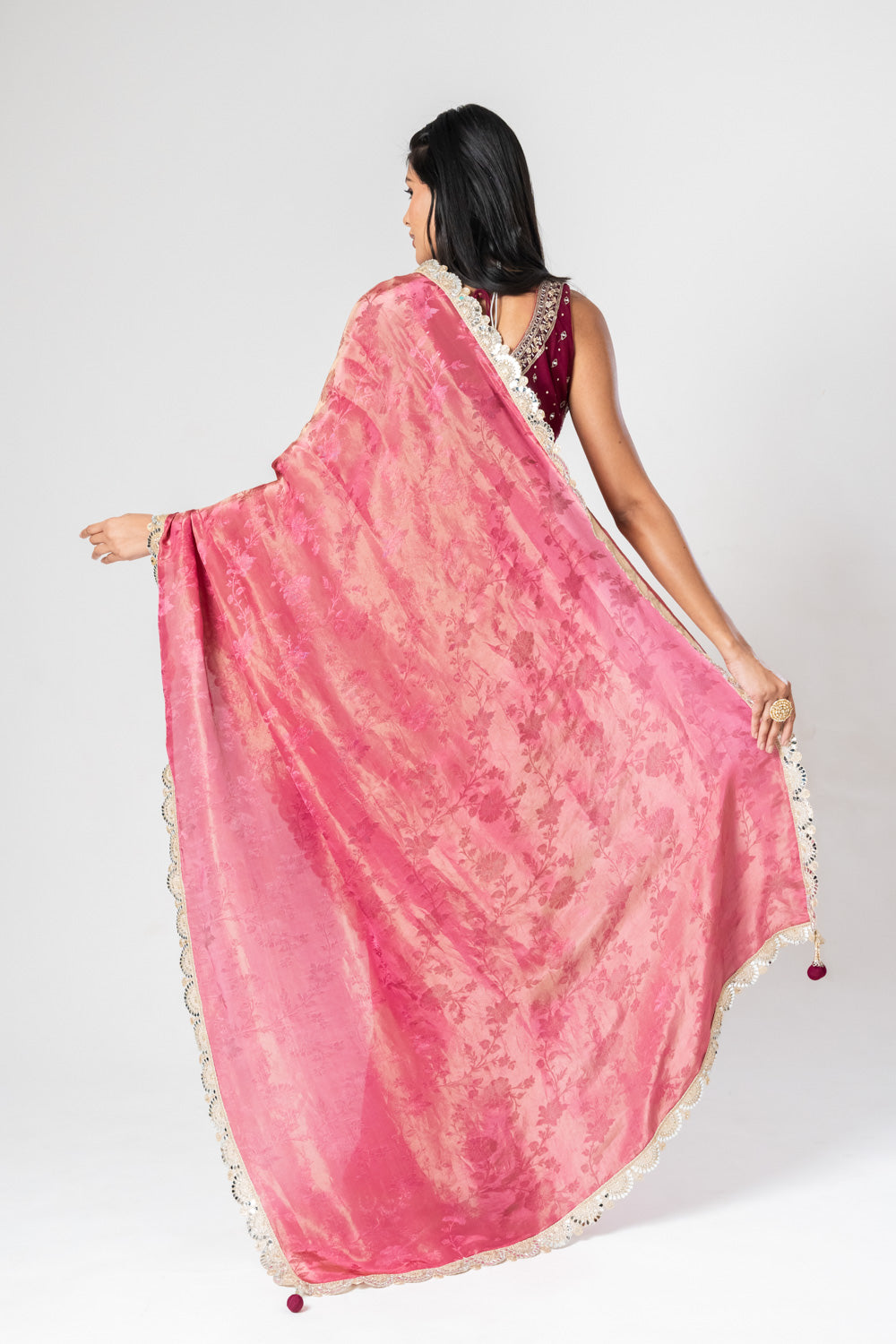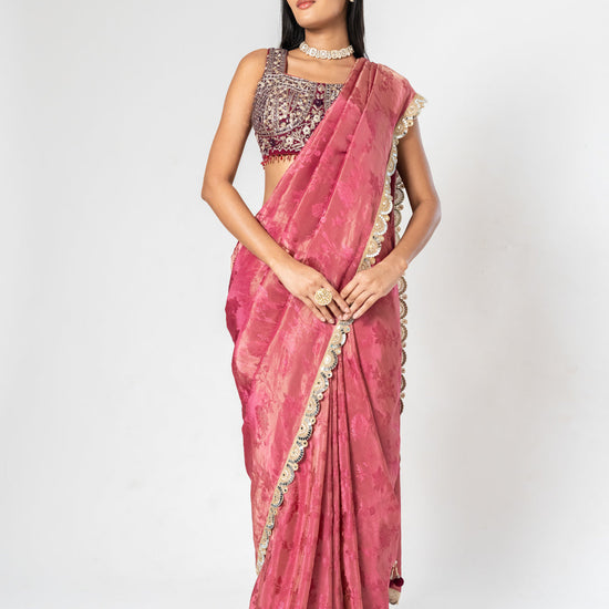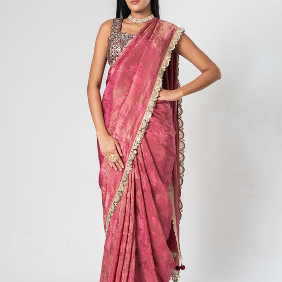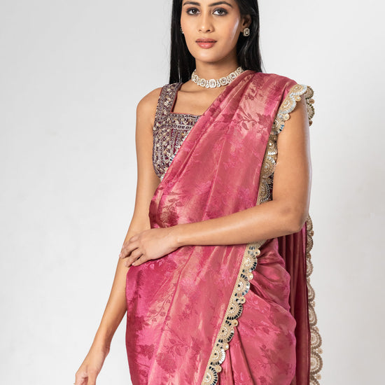This tissue saree is a combination of elegance and glamour. The sheer fabric is soft to the touch and has a slight shimmer, making it perfect for evening wear. The saree is available in a range of colours and is embellished with intricate work, creating a stunning look.