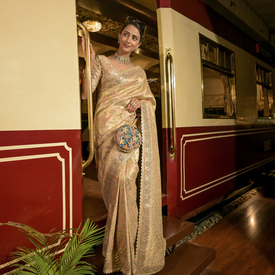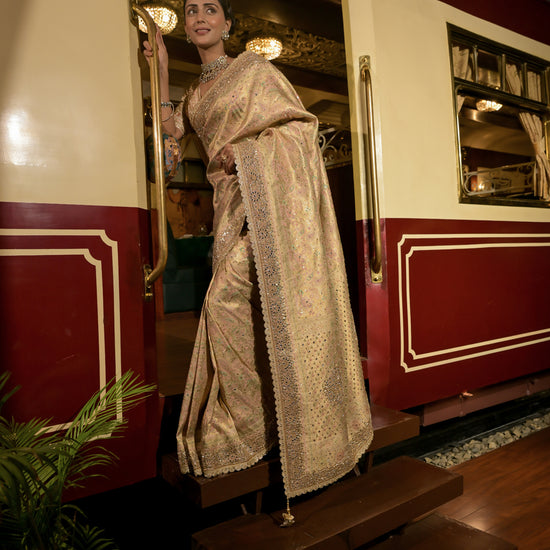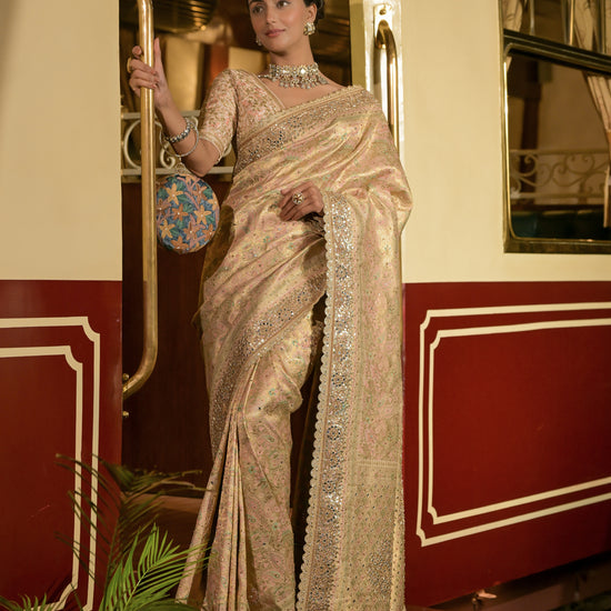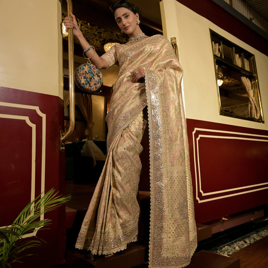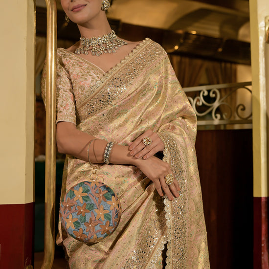 Work : Banarasi Woven Zari, Dabka, Mirror, Sequence, Swarovski & Zari Thread Work