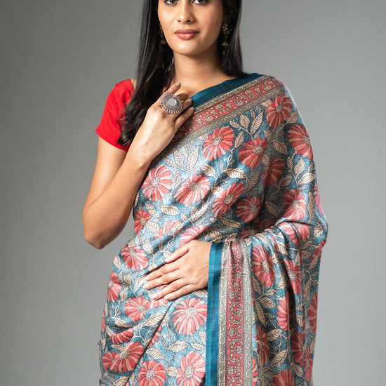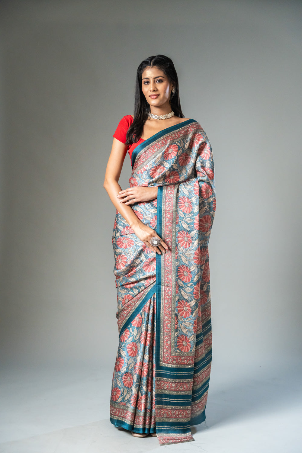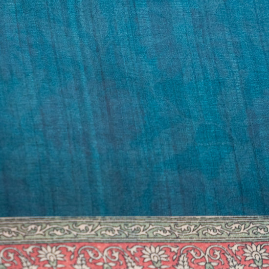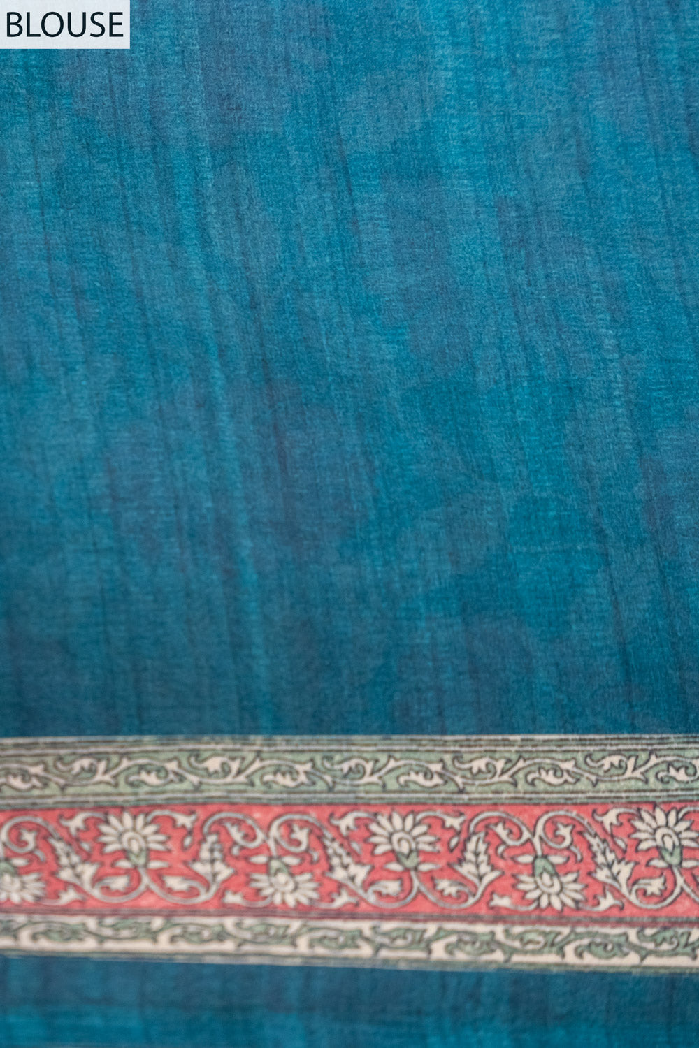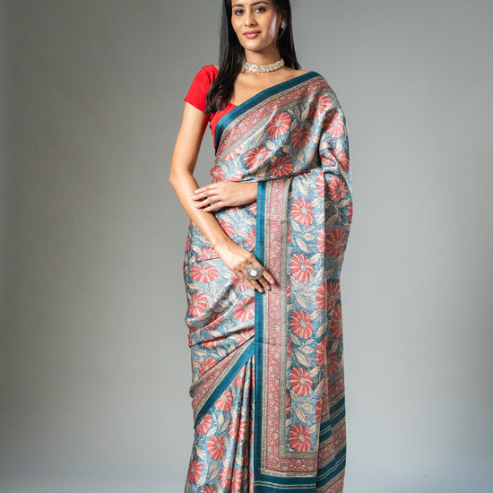 Panna Blue Grey Cotton Digital Print Saree With Unstitched Blouse