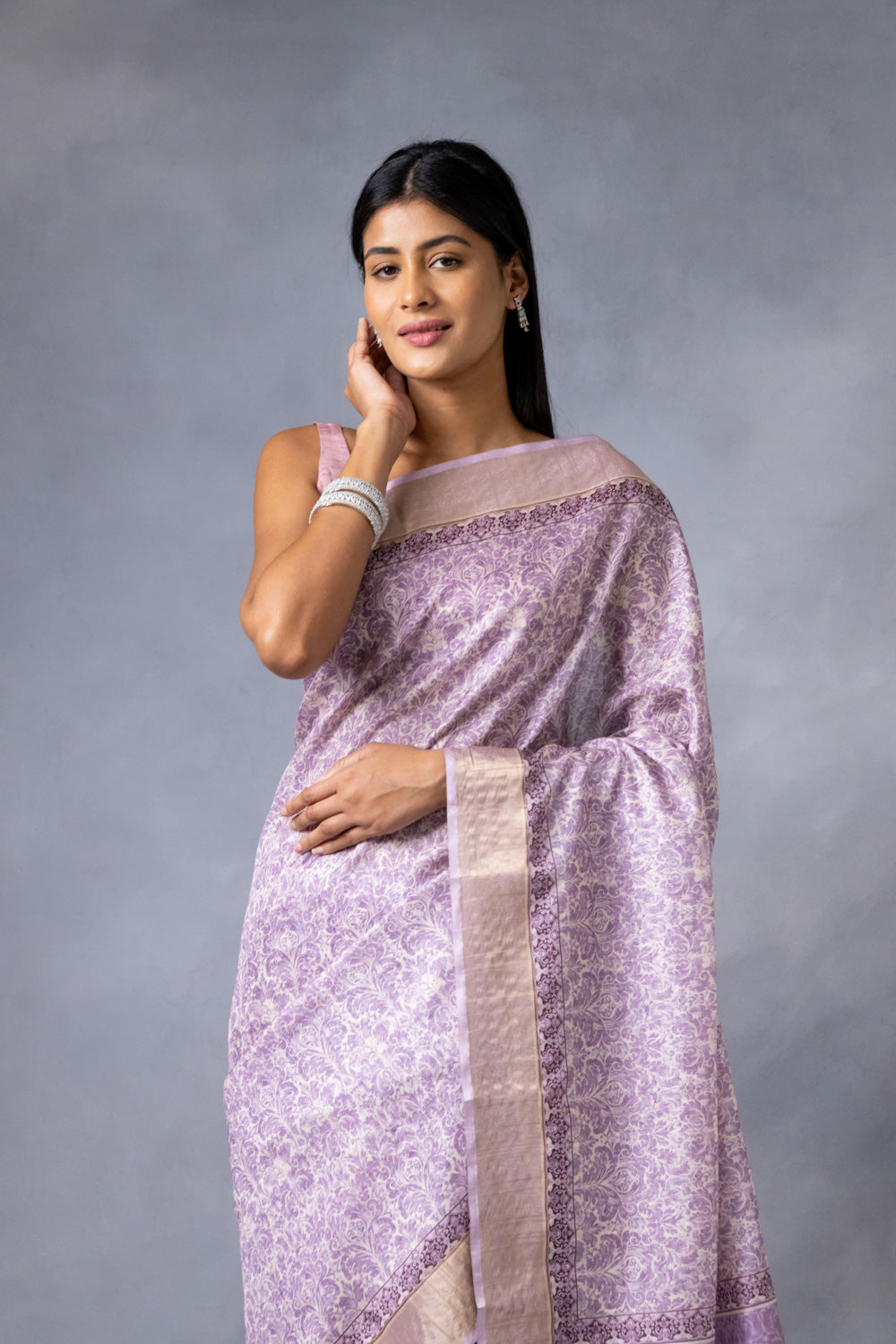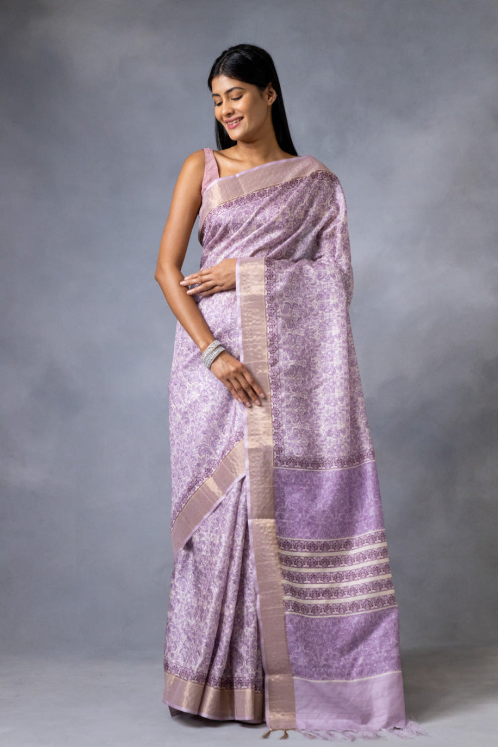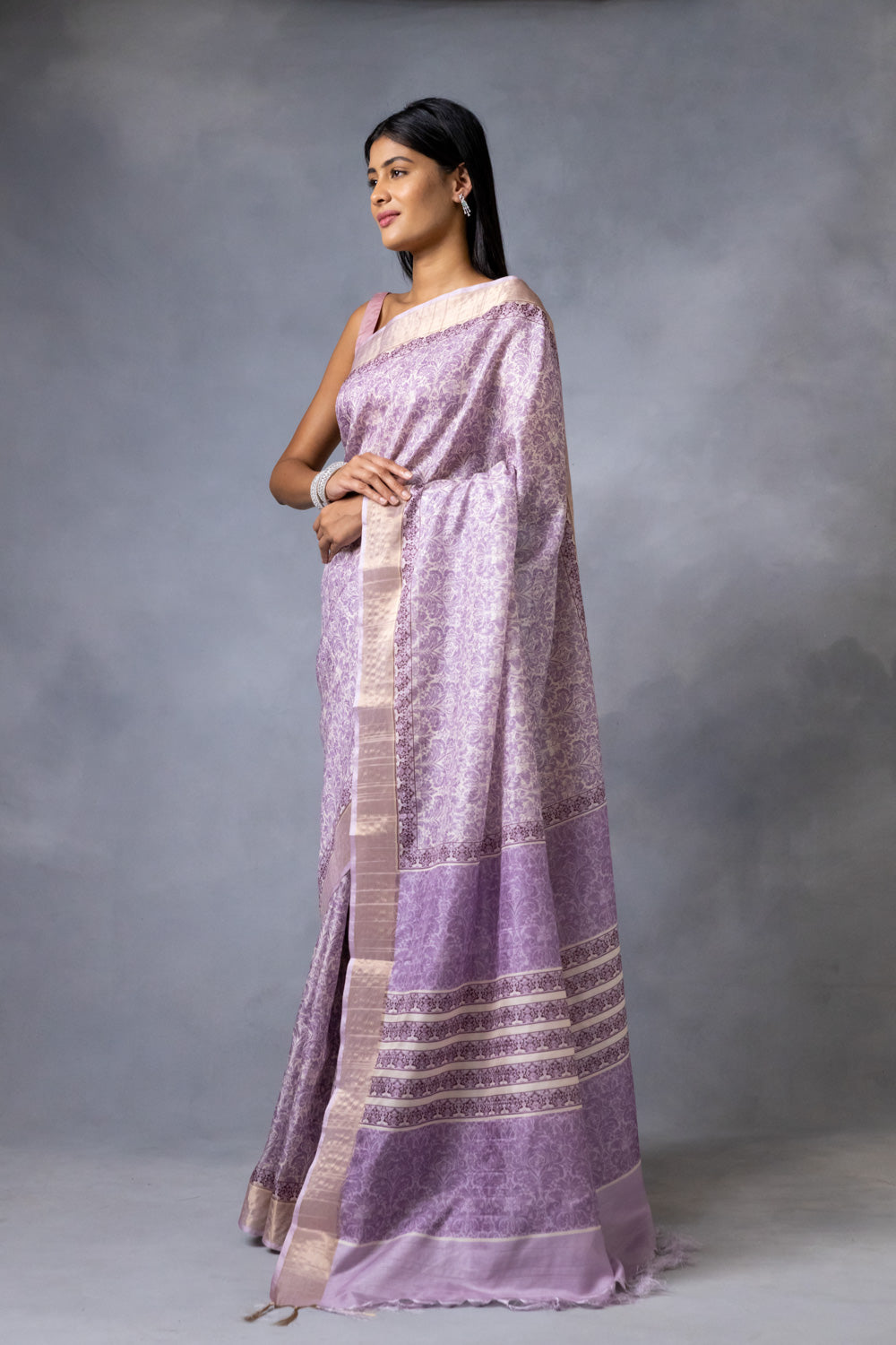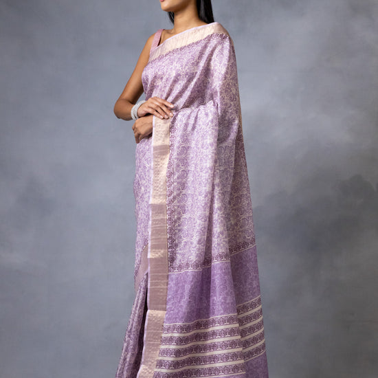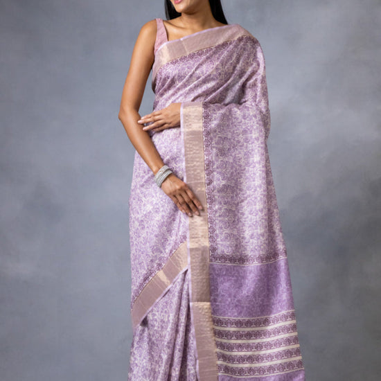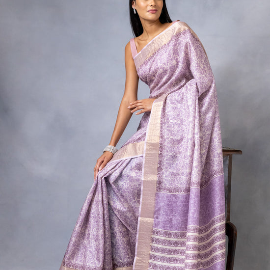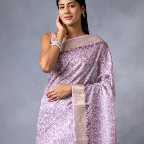 Panna Mauve Cotton Silk Digital Print Saree With Unstitched Blouse