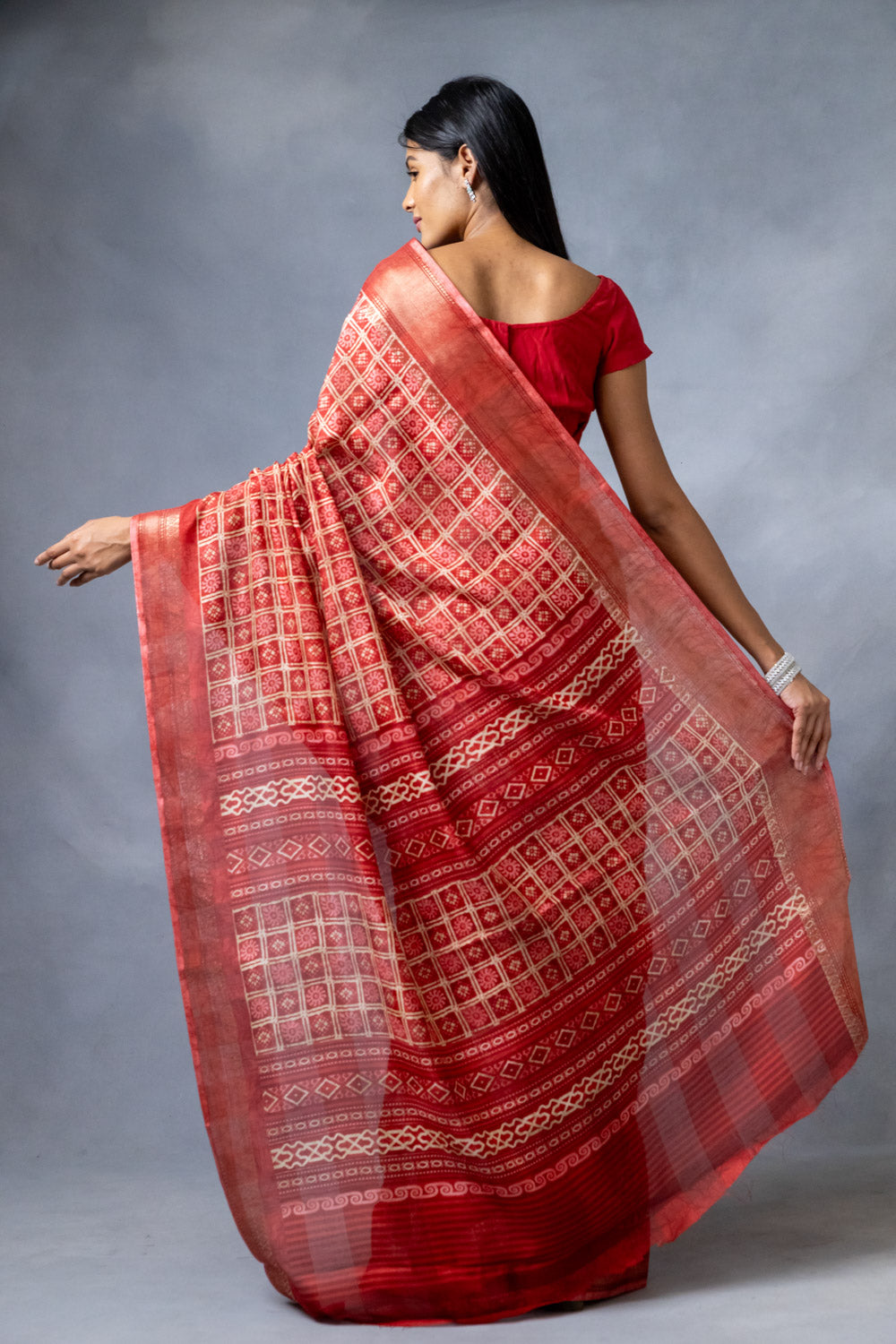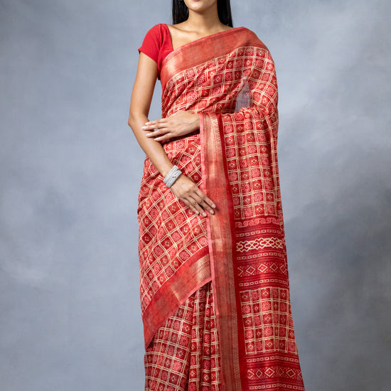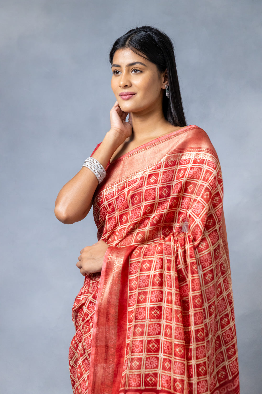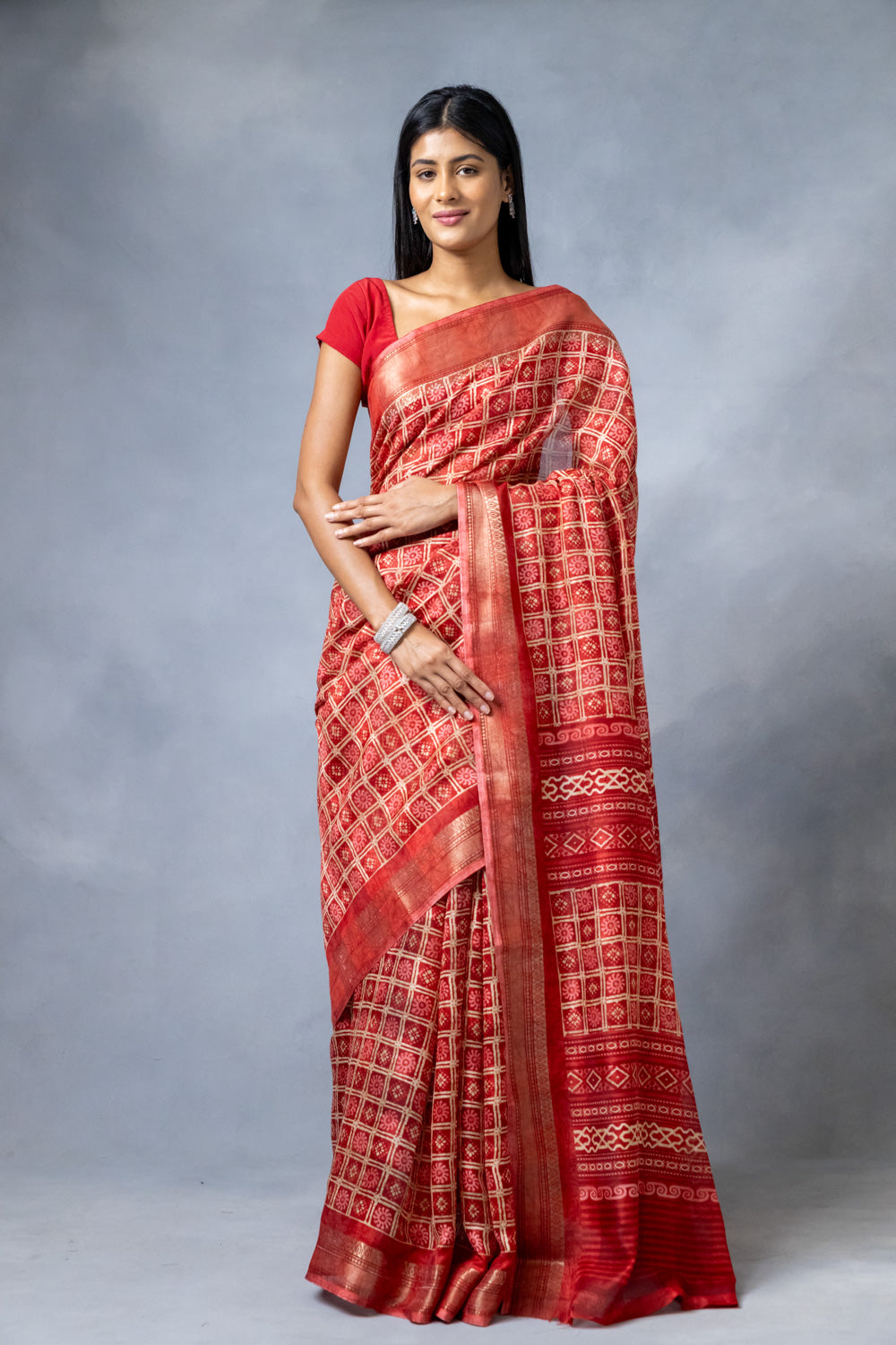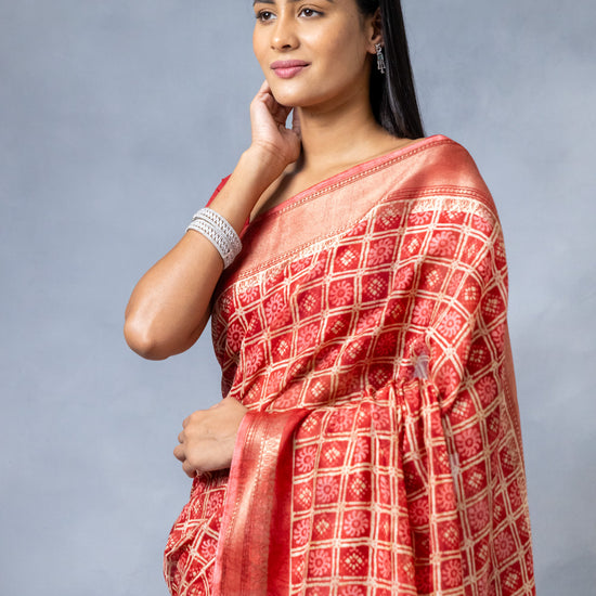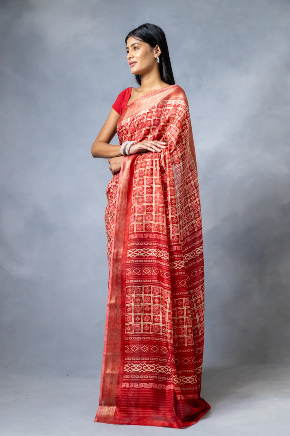 Panna Maroon Cotton Silk Digital Print Saree With Unstitched Blouse