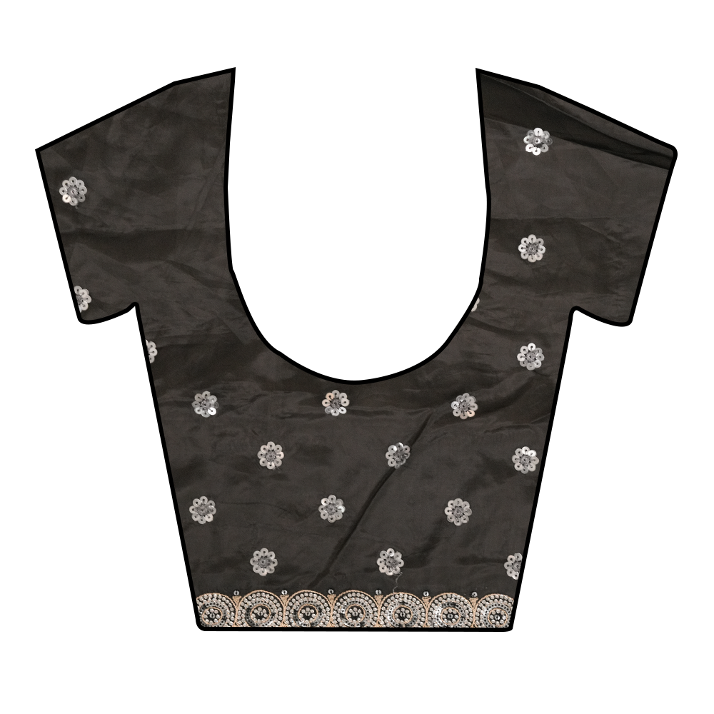 This Organza saree, featuring intricate Sequence, Threadwork & Zarkan, offers a stunning look for Party Wear. The Black add charm and versatility. Dry Wash / Dry Clean recommended for longevity.