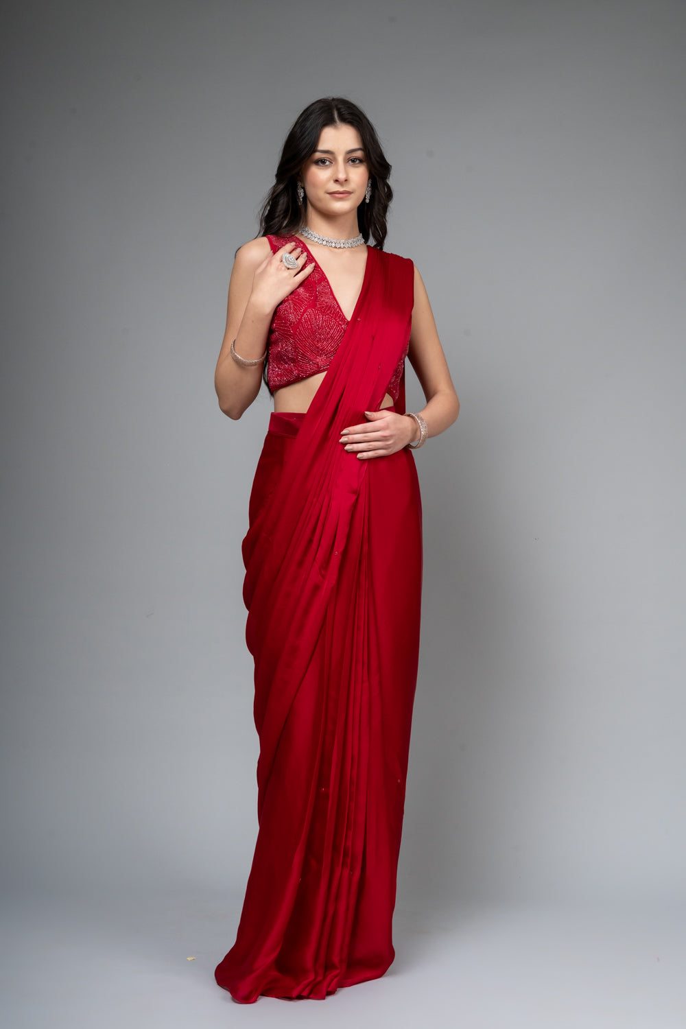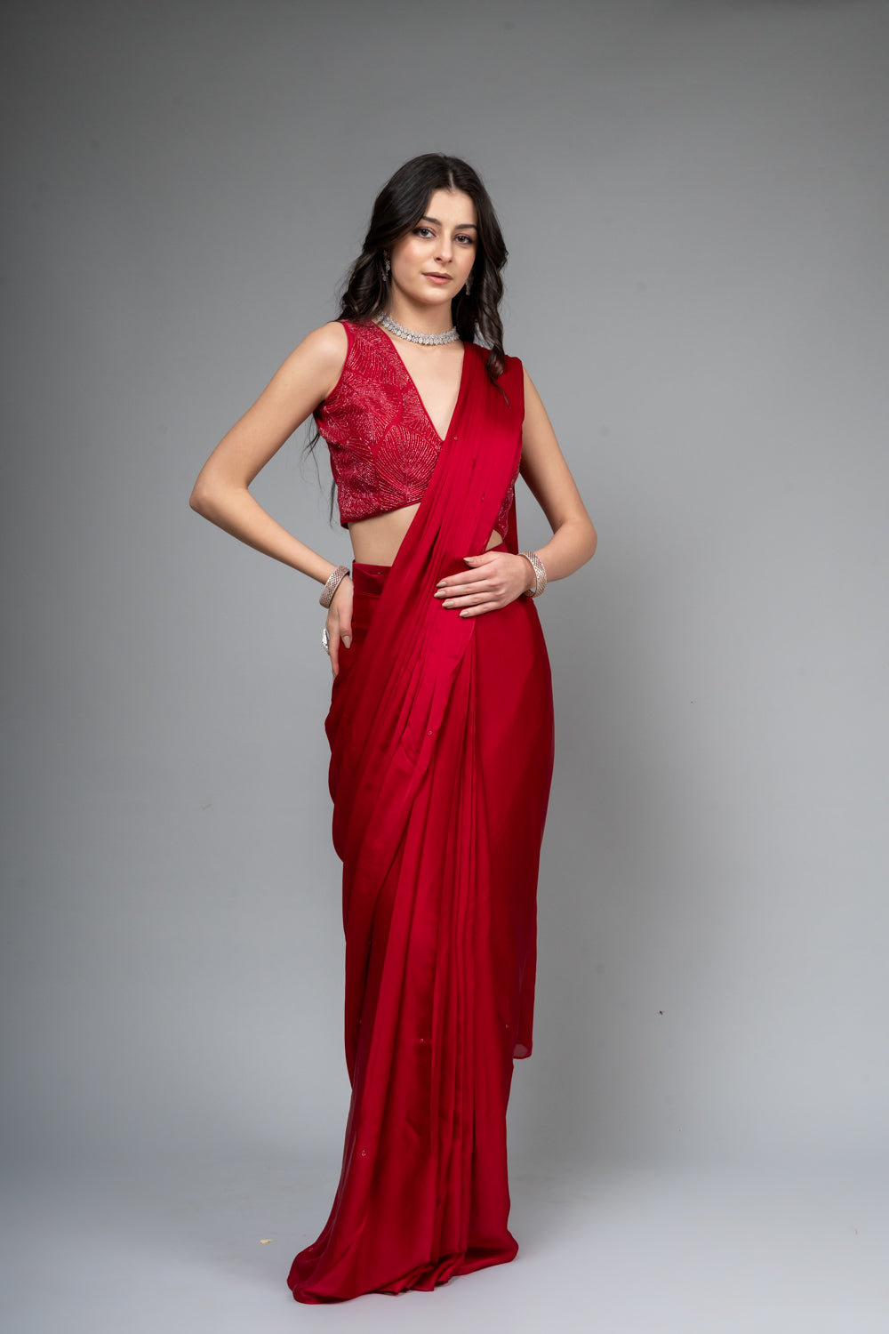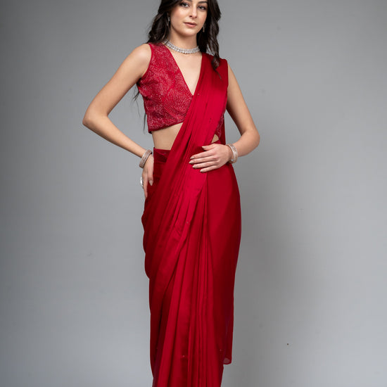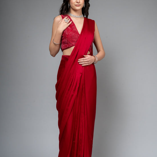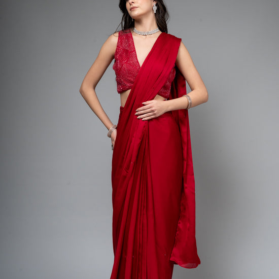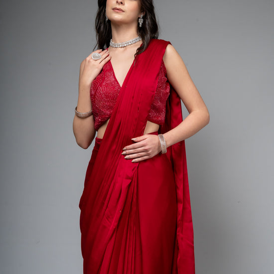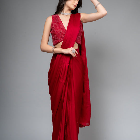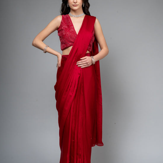 Maroon Cutdana & Sequence Organza Pre-Draped Designer Saree With Ready – The Panna Shop