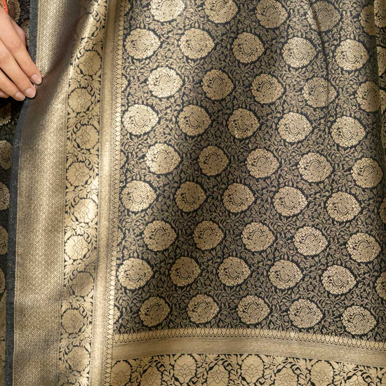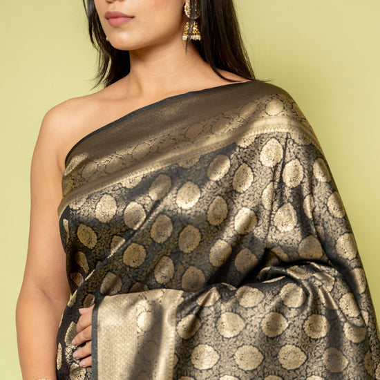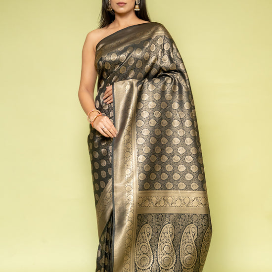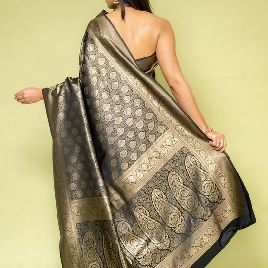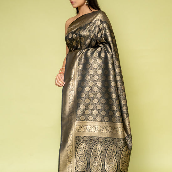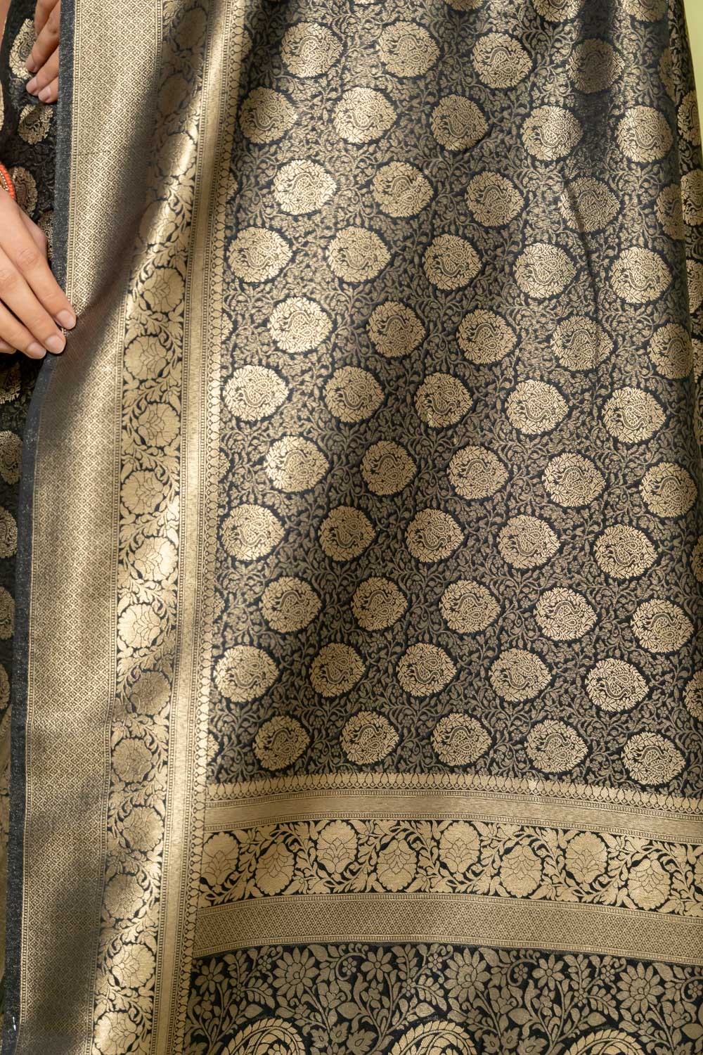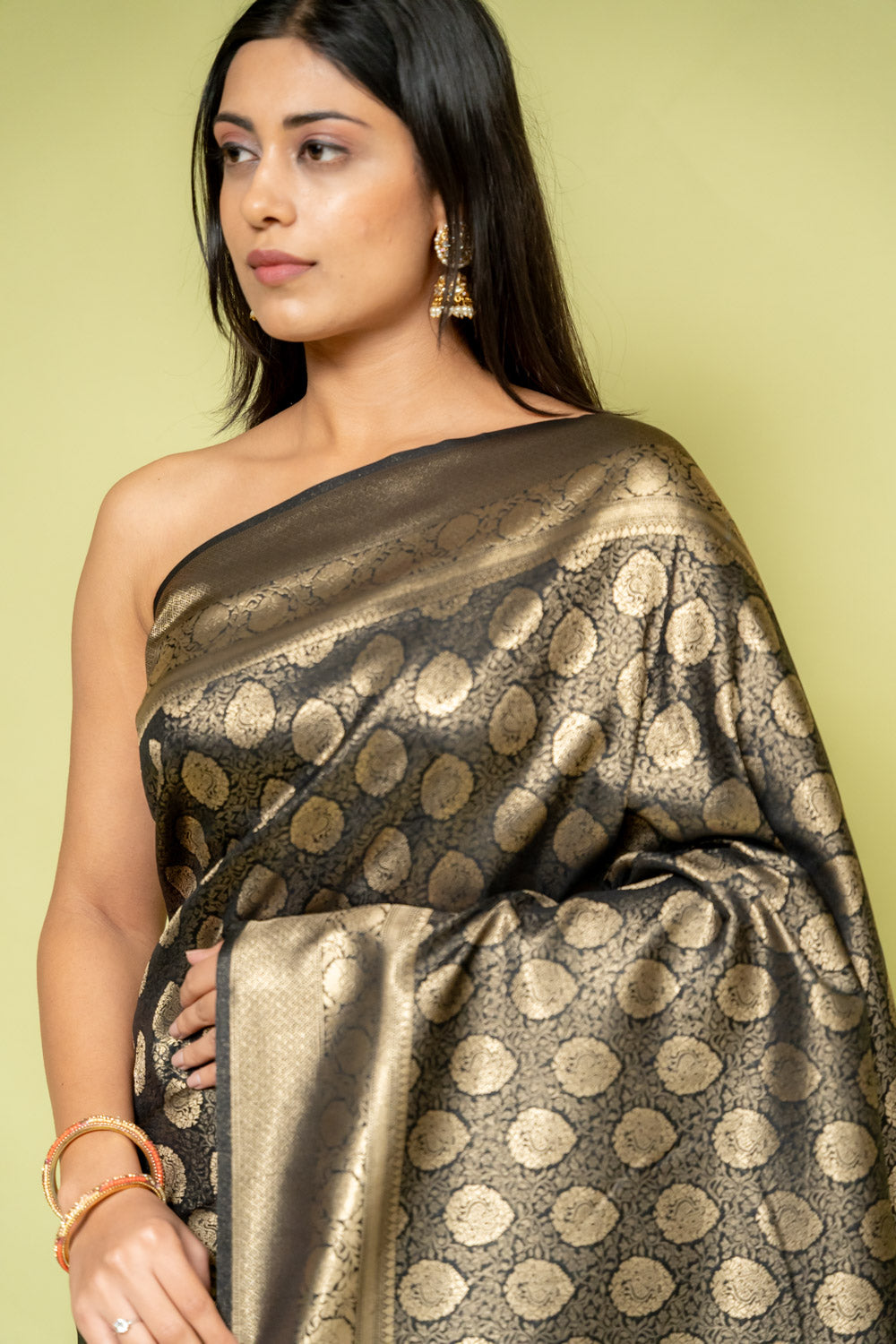 Black Banarasi Silk Saree With Unstitched Blouse – The Panna Shop