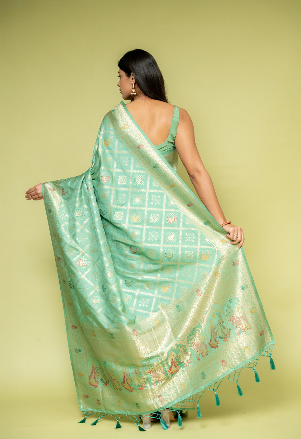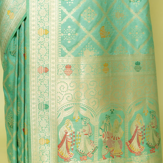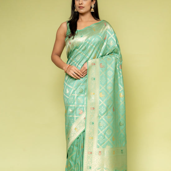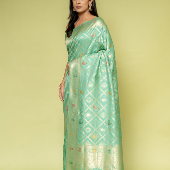 Panna Mint Green Banarasi Silk Saree With Unstitched Blouse