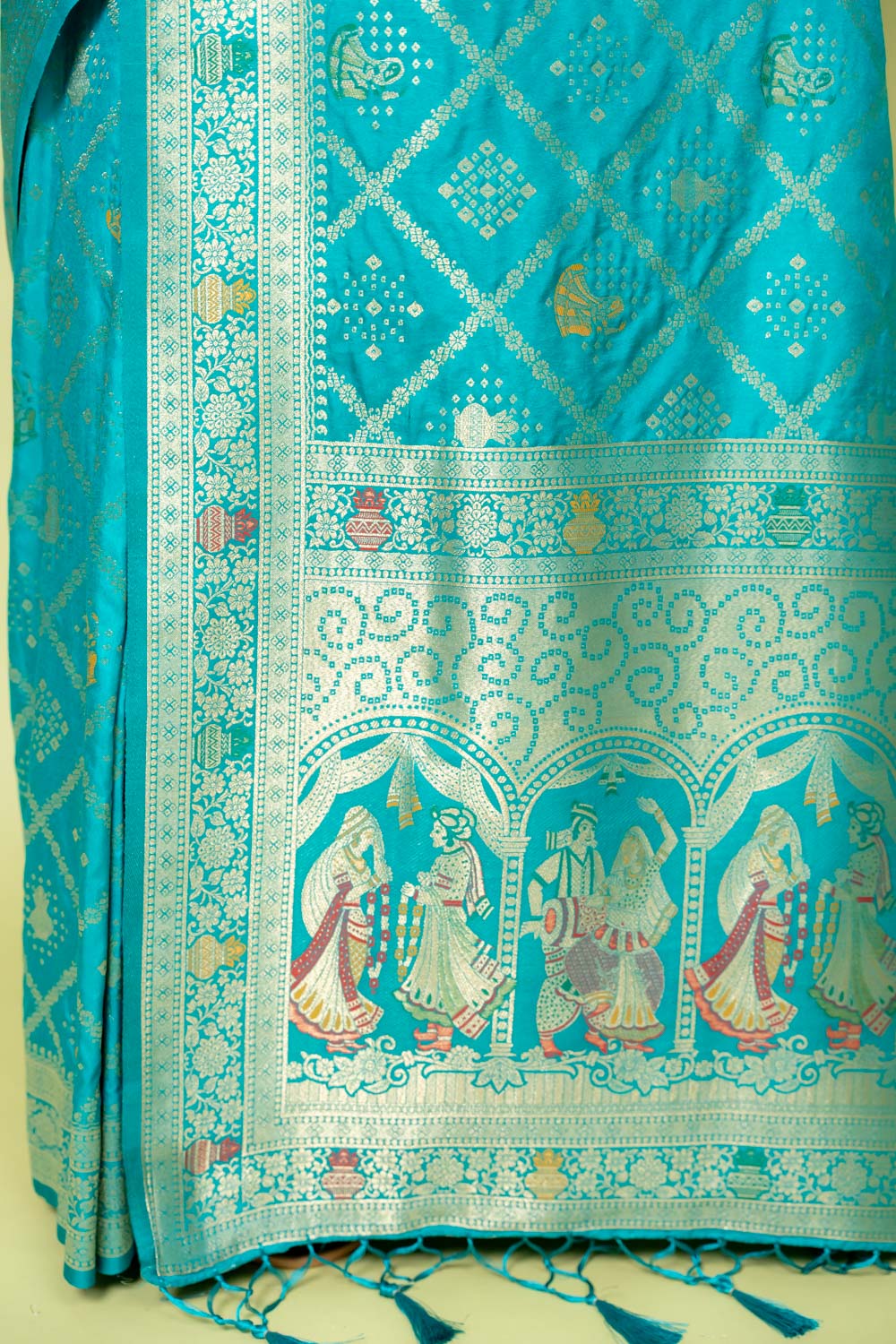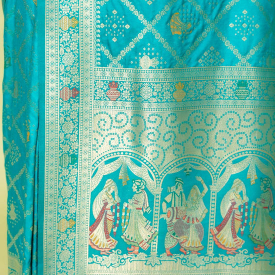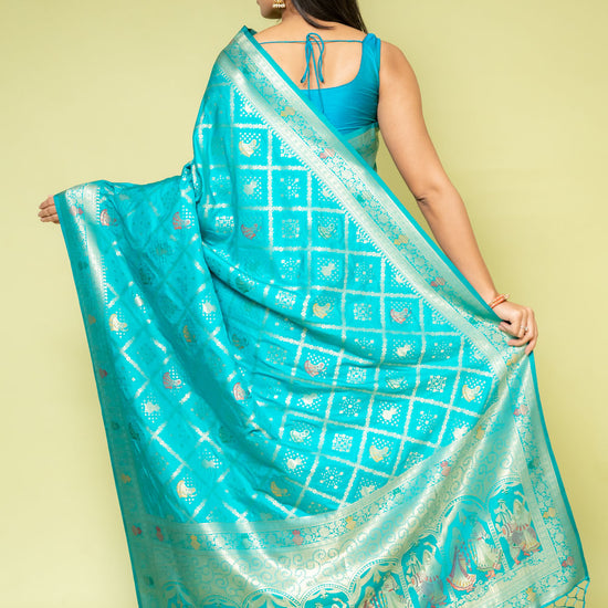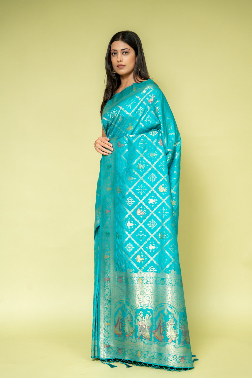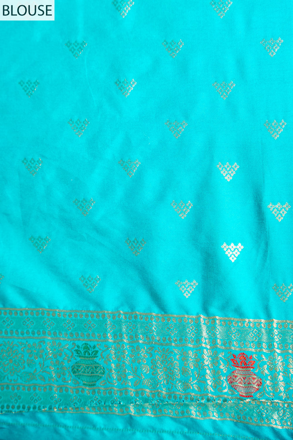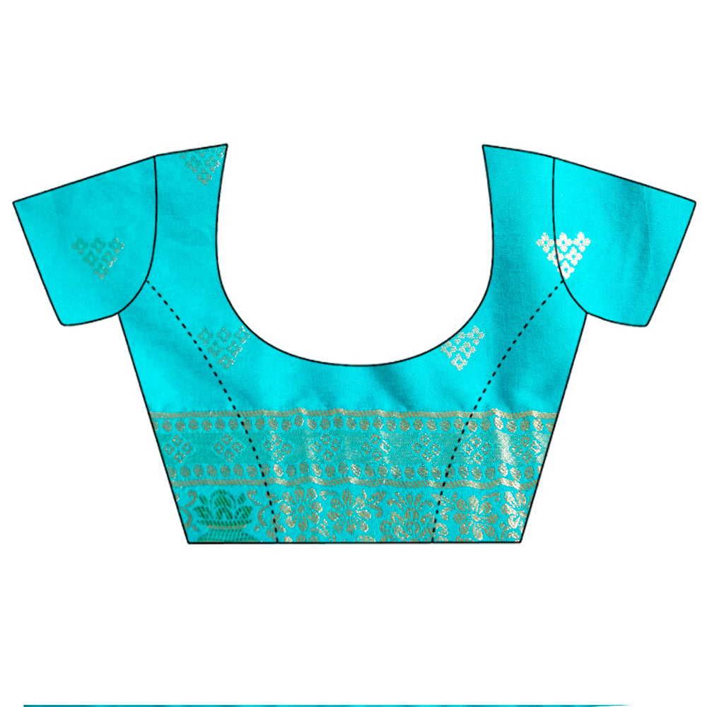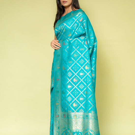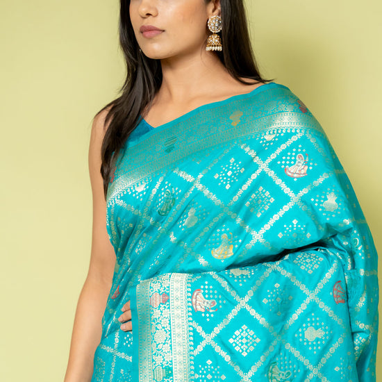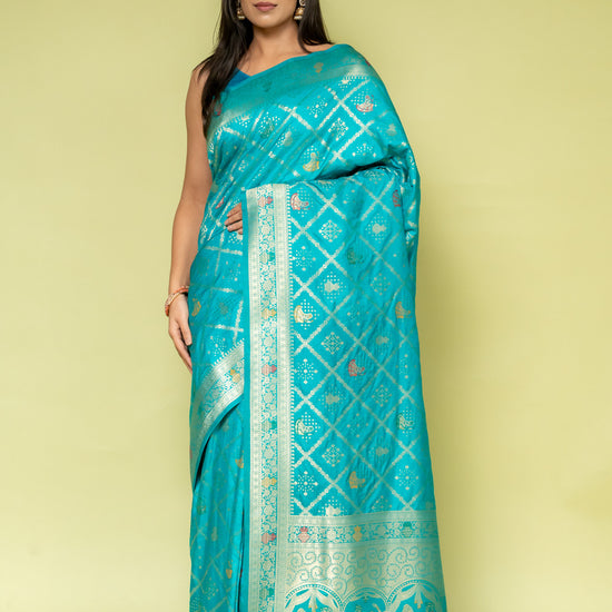 Panna Rama Banarasi Silk Saree With Unstitched Blouse