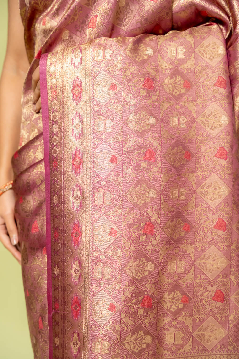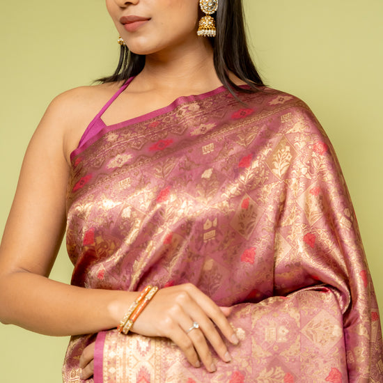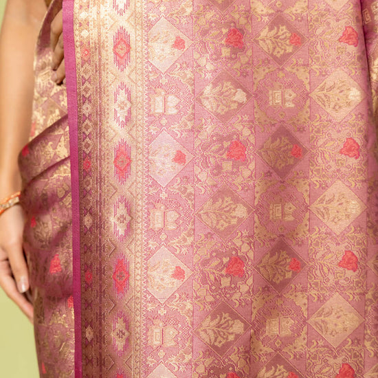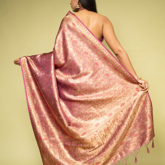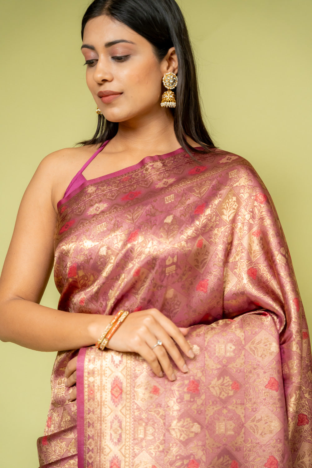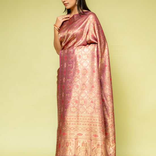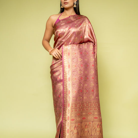 Panna Mauve Banarasi Silk Saree With Unstitched Blouse