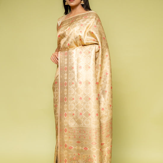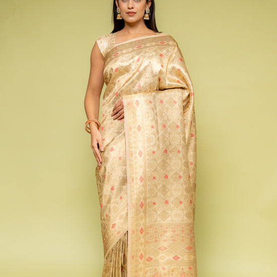 Made from luxurious Banarasi Silk, this saree, adorned with Banarasi Woven Zari, suits Formal Occasion. Its Color Variations and design make it an elegant choice. Dry Wash / Dry Clean advised for care.