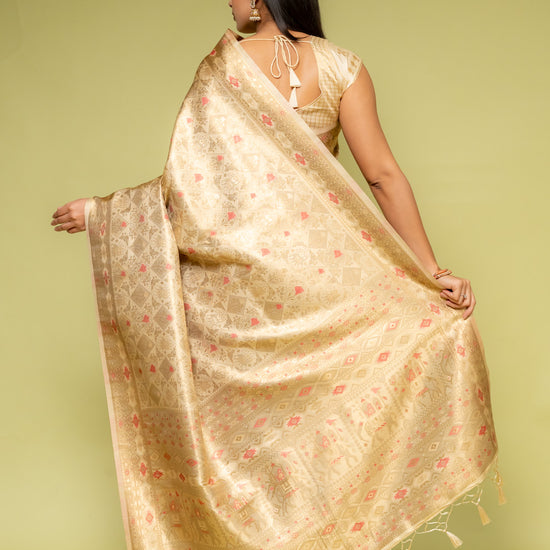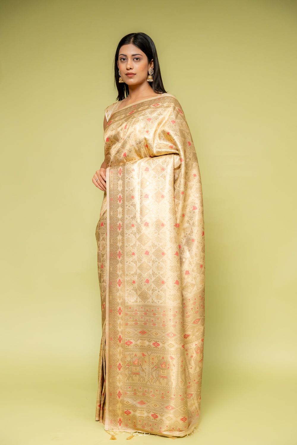 Panna Tussar Banarasi Silk Saree With Unstitched Blouse