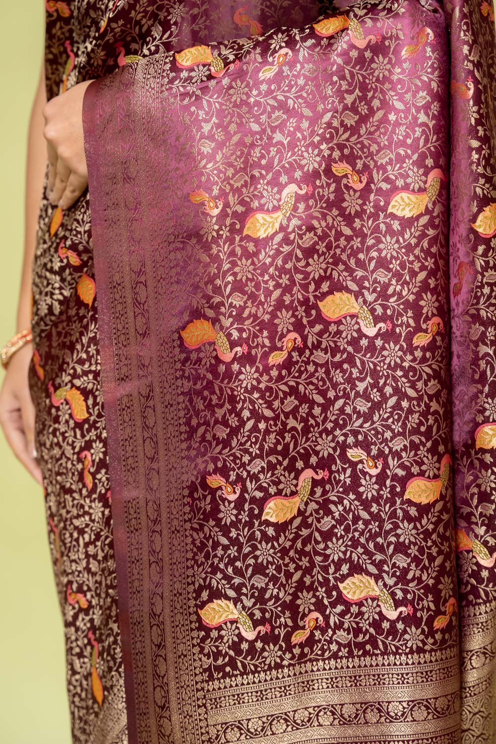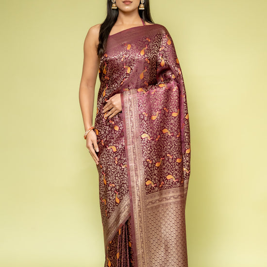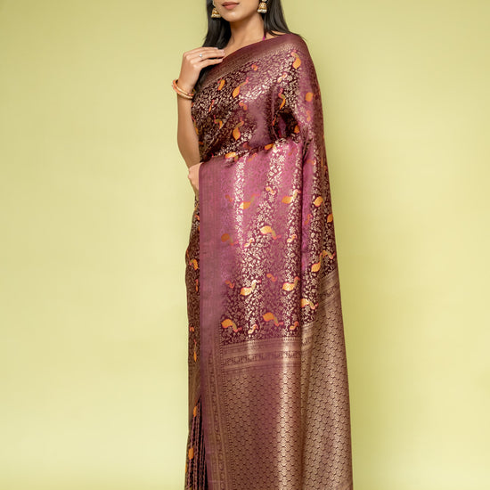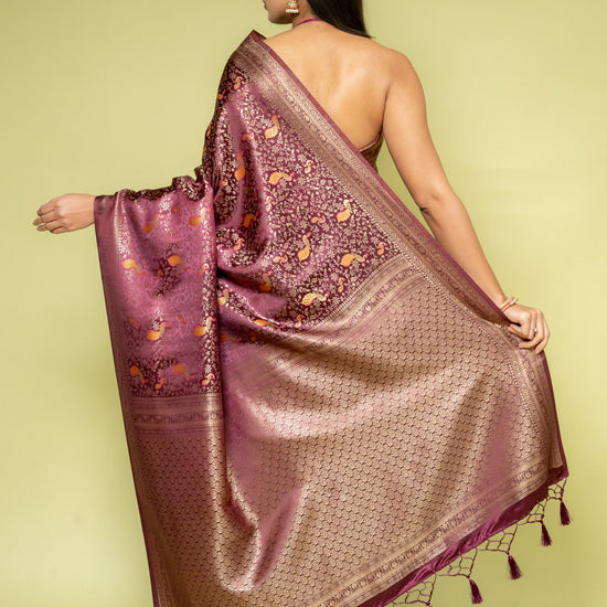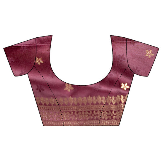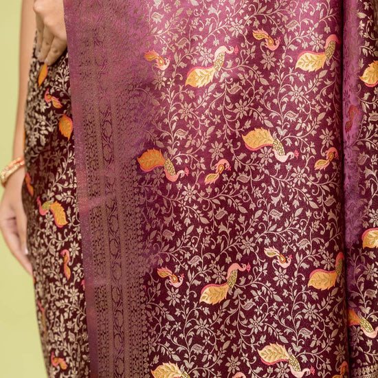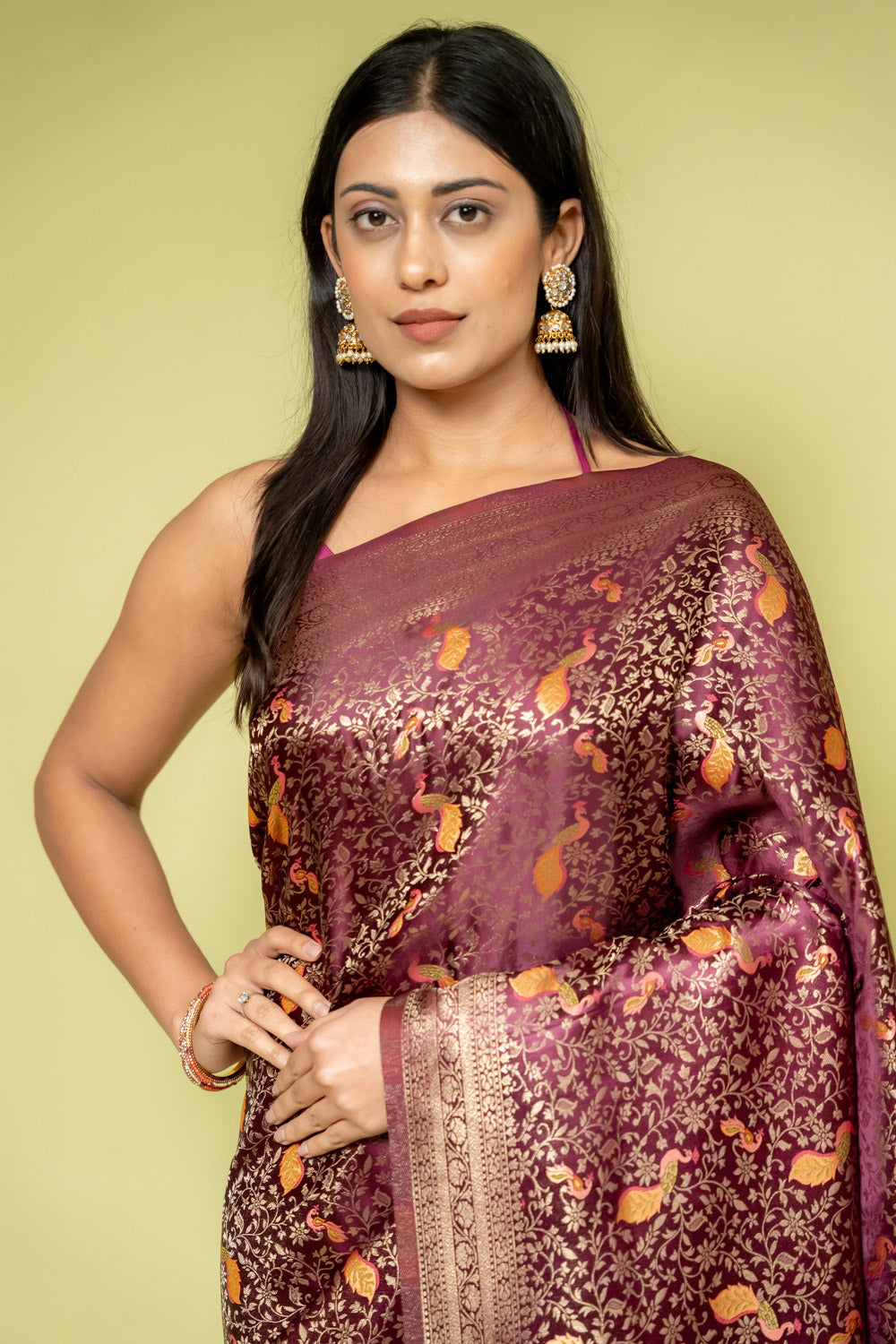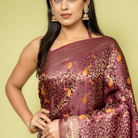 Panna Garnet Banarasi Silk Saree With Unstitched Blouse