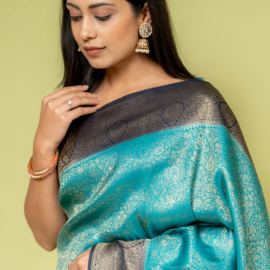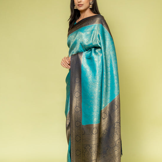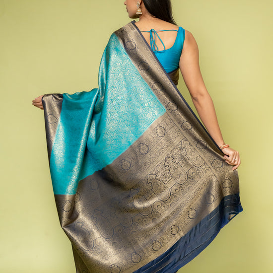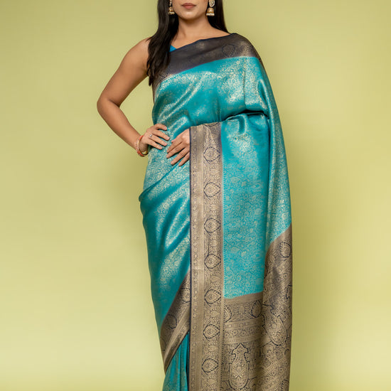 Panna Rama Banarasi Silk Saree With Unstitched Blouse
