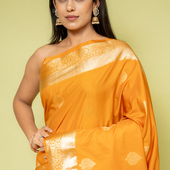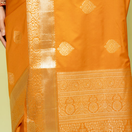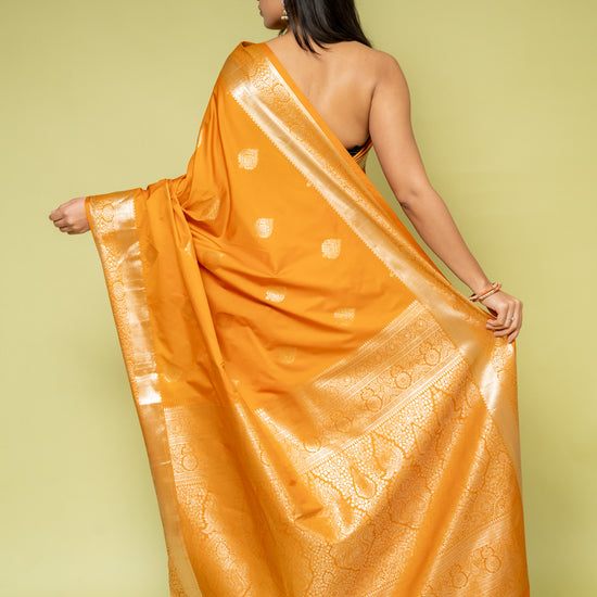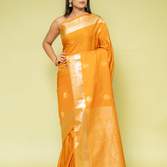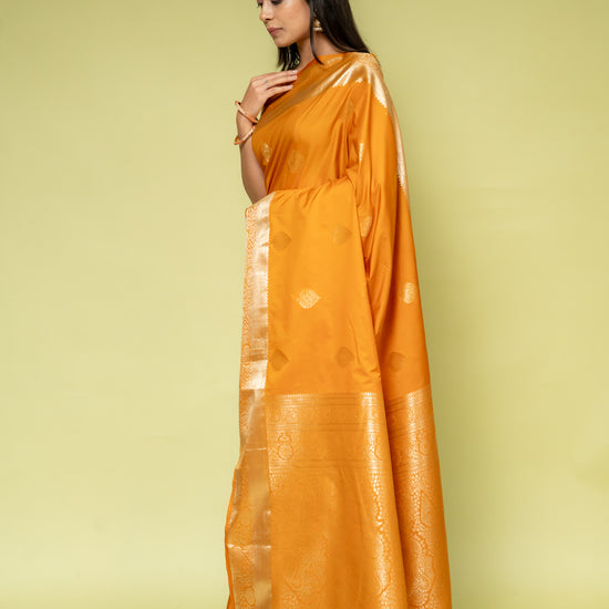 Panna Mustard Banarasi Silk Saree With Unstitched Blouse