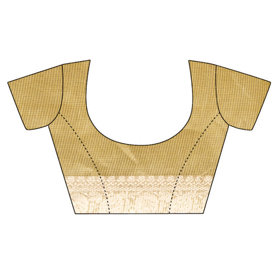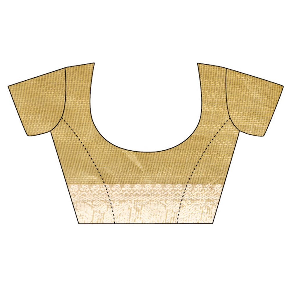 Panna Lemon Gold Banarasi Woven Zari & Threadwork Cotton Saree With Unstitched Blouse
