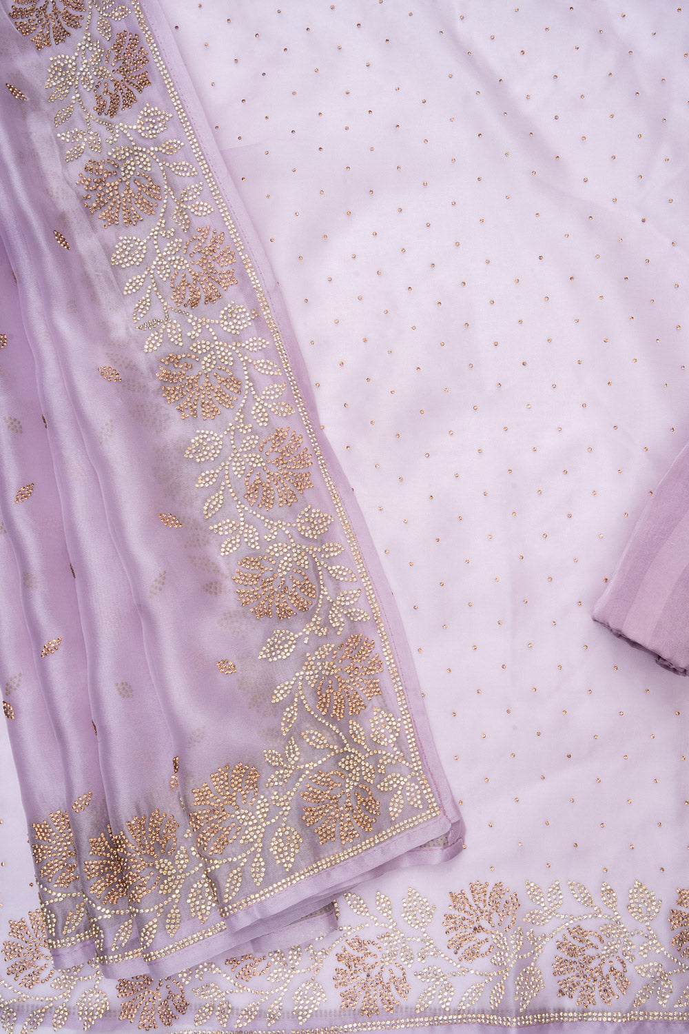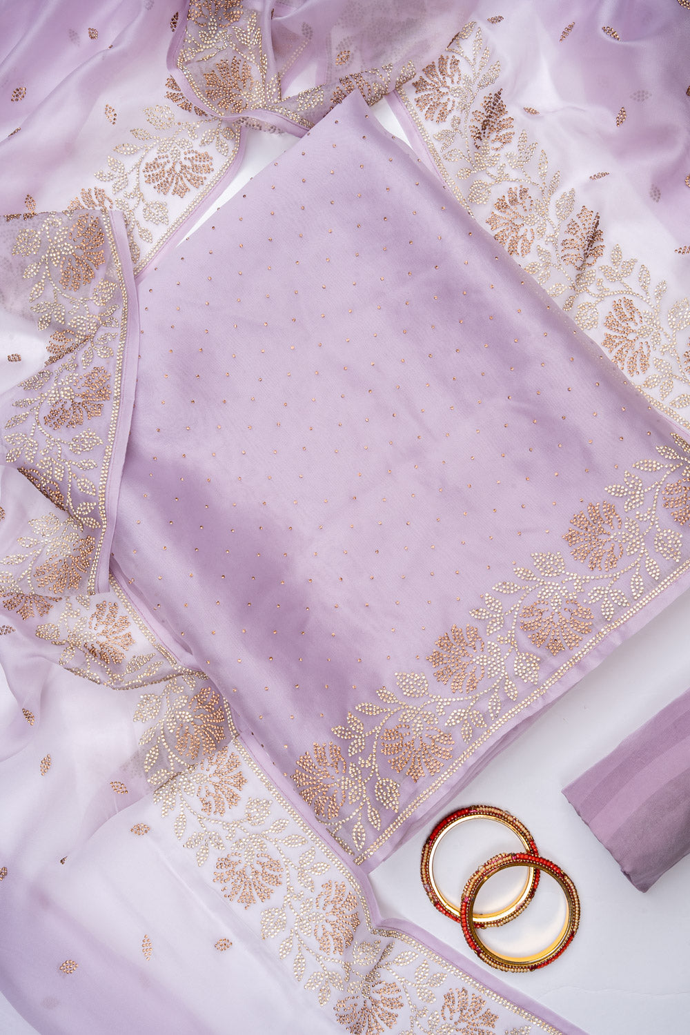 Mauve Organza Unstitched Salwar Suit With Organza Dupatta