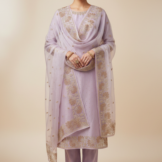 Mauve Organza Unstitched Salwar Suit With Organza Dupatta – The Panna Shop