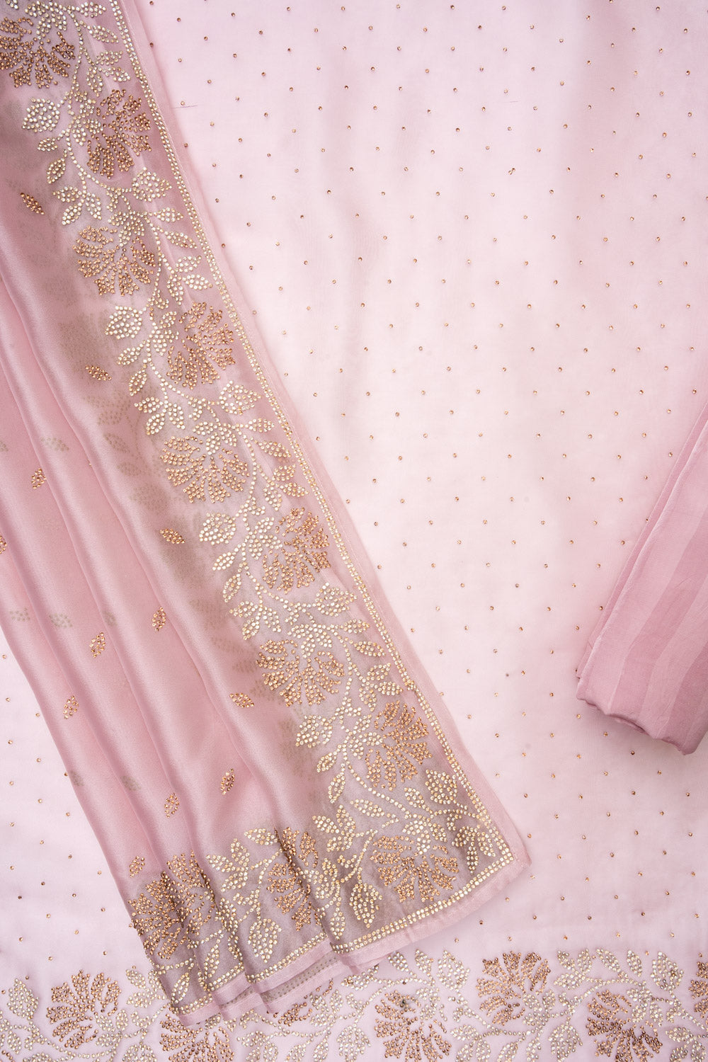 Panna Pink Organza Unstitched Salwar Suit With Organza Dupatta