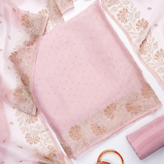 Pink Organza Unstitched Salwar Suit With Organza Dupatta
