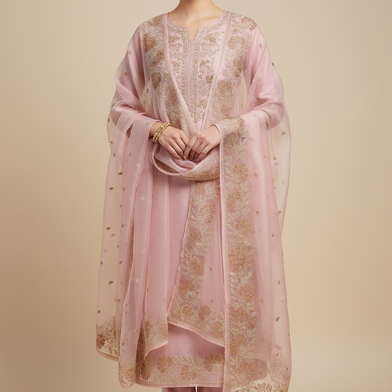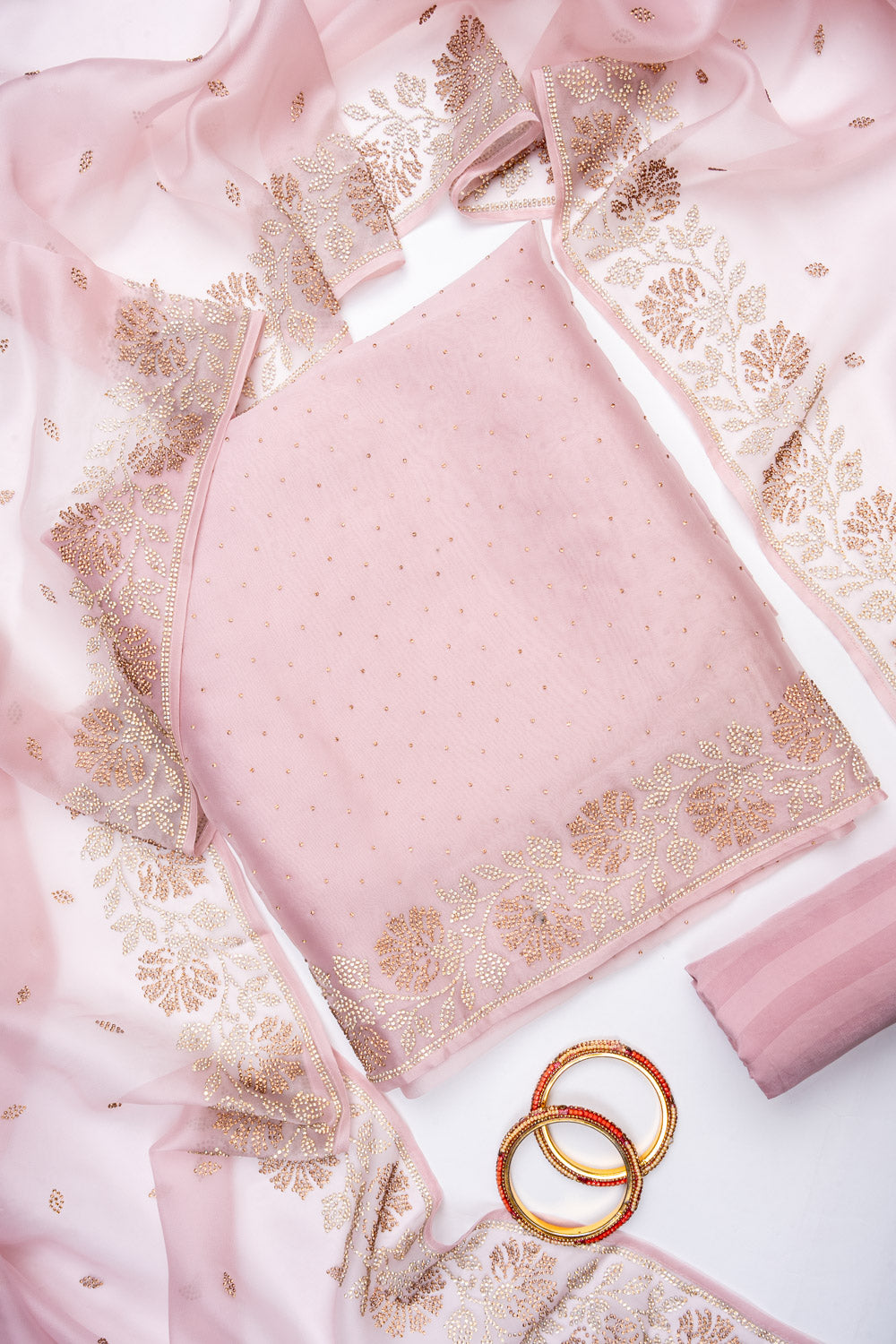 Pink Organza Unstitched Salwar Suit With Organza Dupatta – The Panna Shop