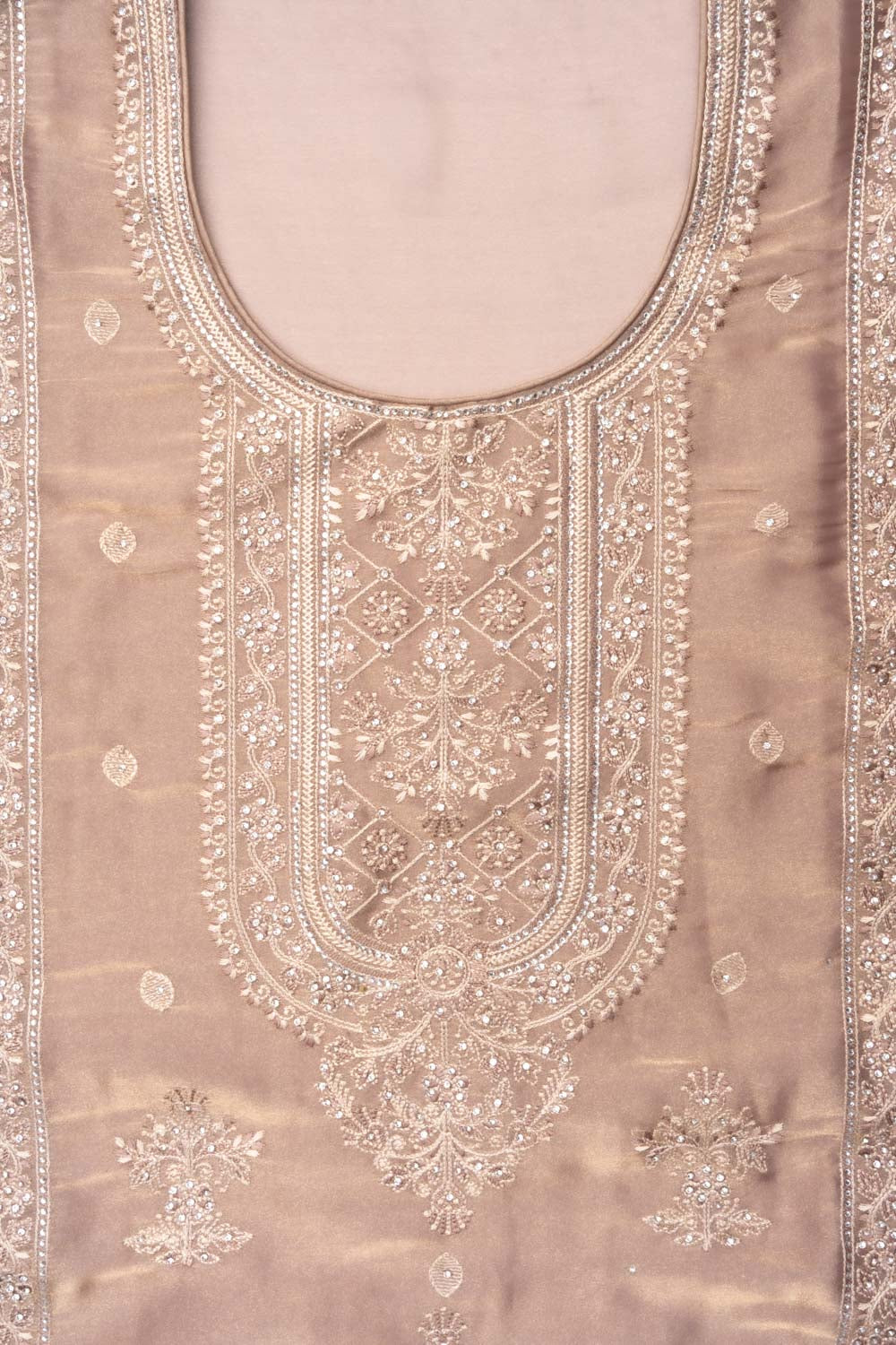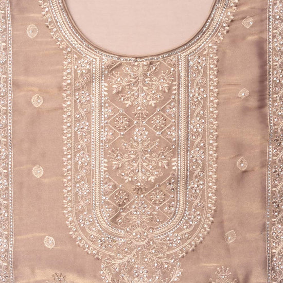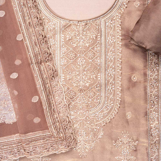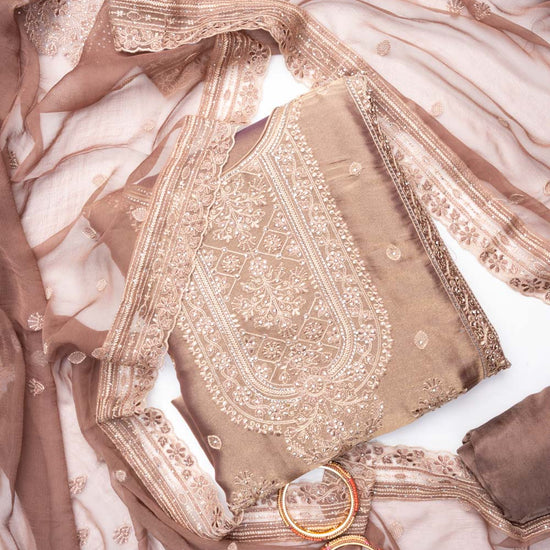 Panna Chikoo Organza Unstitched Salwar Suit With Chiffon Dupatta