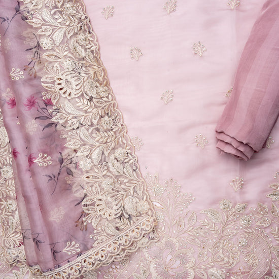 Onion Organza Unstitched Salwar Suit With Organza Dupatta