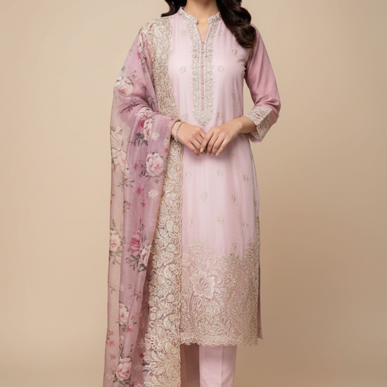 Onion Organza Unstitched Salwar Suit With Organza Dupatta – The Panna Shop