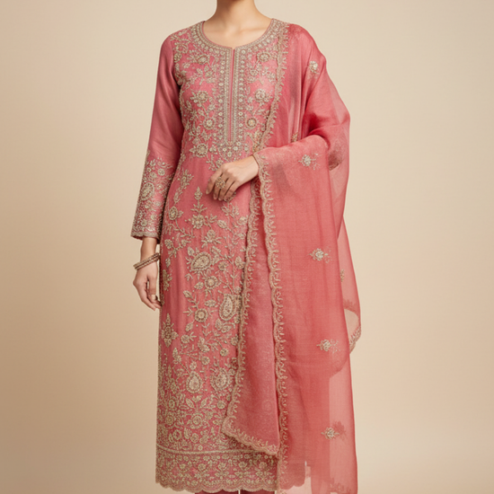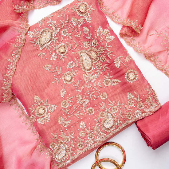 Gajari Organza Unstitched Salwar Suit With Organza Dupatta – The Panna Shop