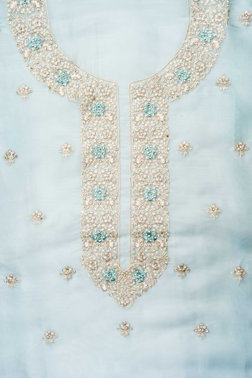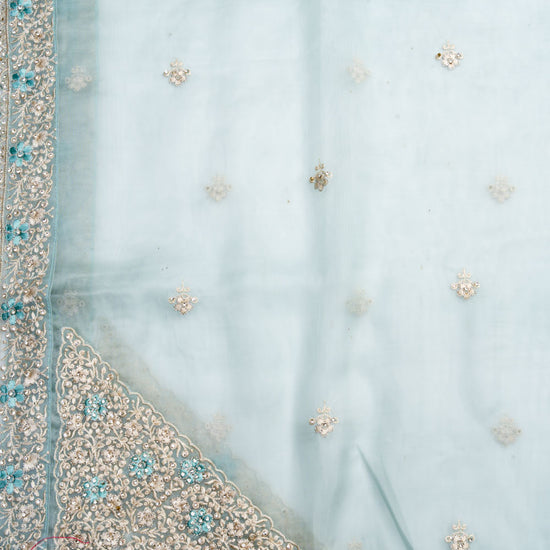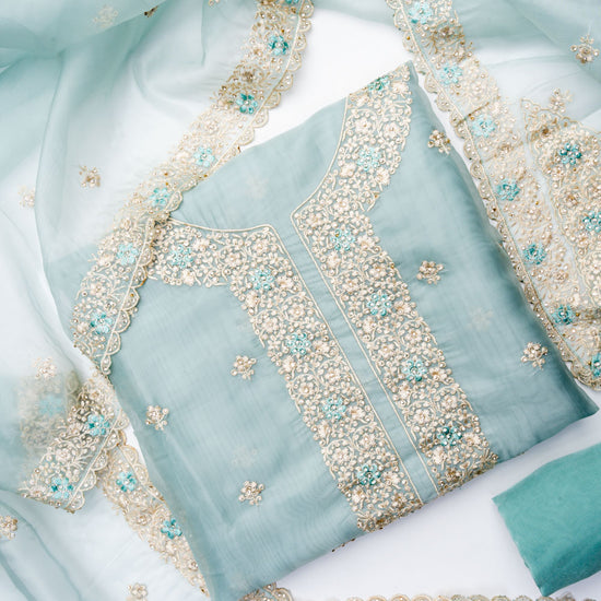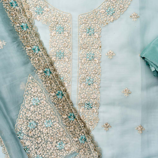 Panna Tea Green Organza Unstitched Salwar Suit With Organza Dupatta