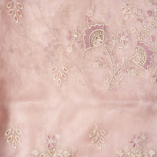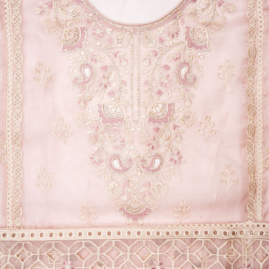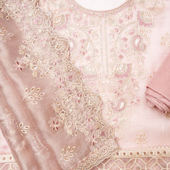 Peach Organza Unstitched Salwar Suit With Organza Dupatta
