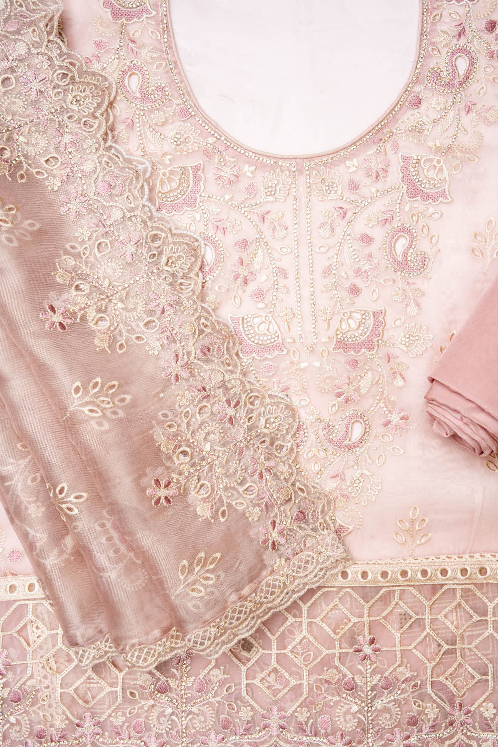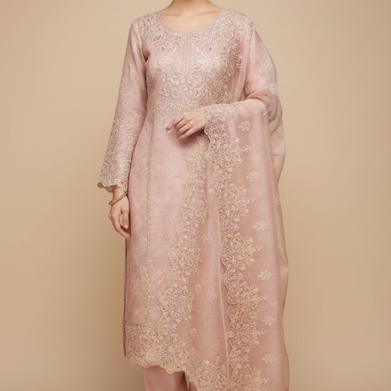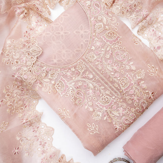 Peach Organza Unstitched Salwar Suit With Organza Dupatta – The Panna Shop