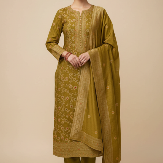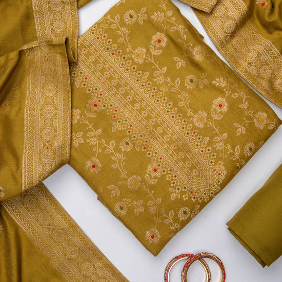 Panna Pista Pashmina Unstitched Salwar Suit With Pashmina Dupatta