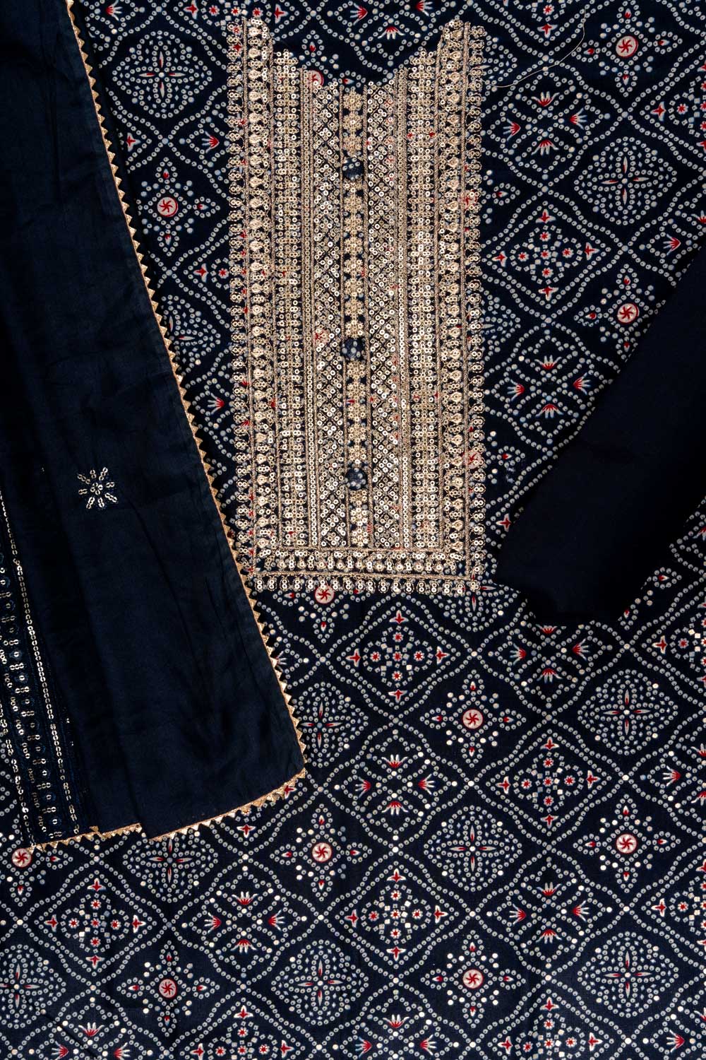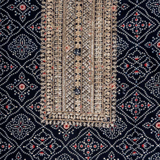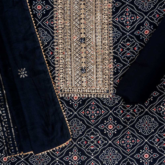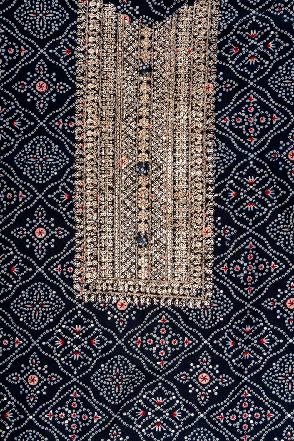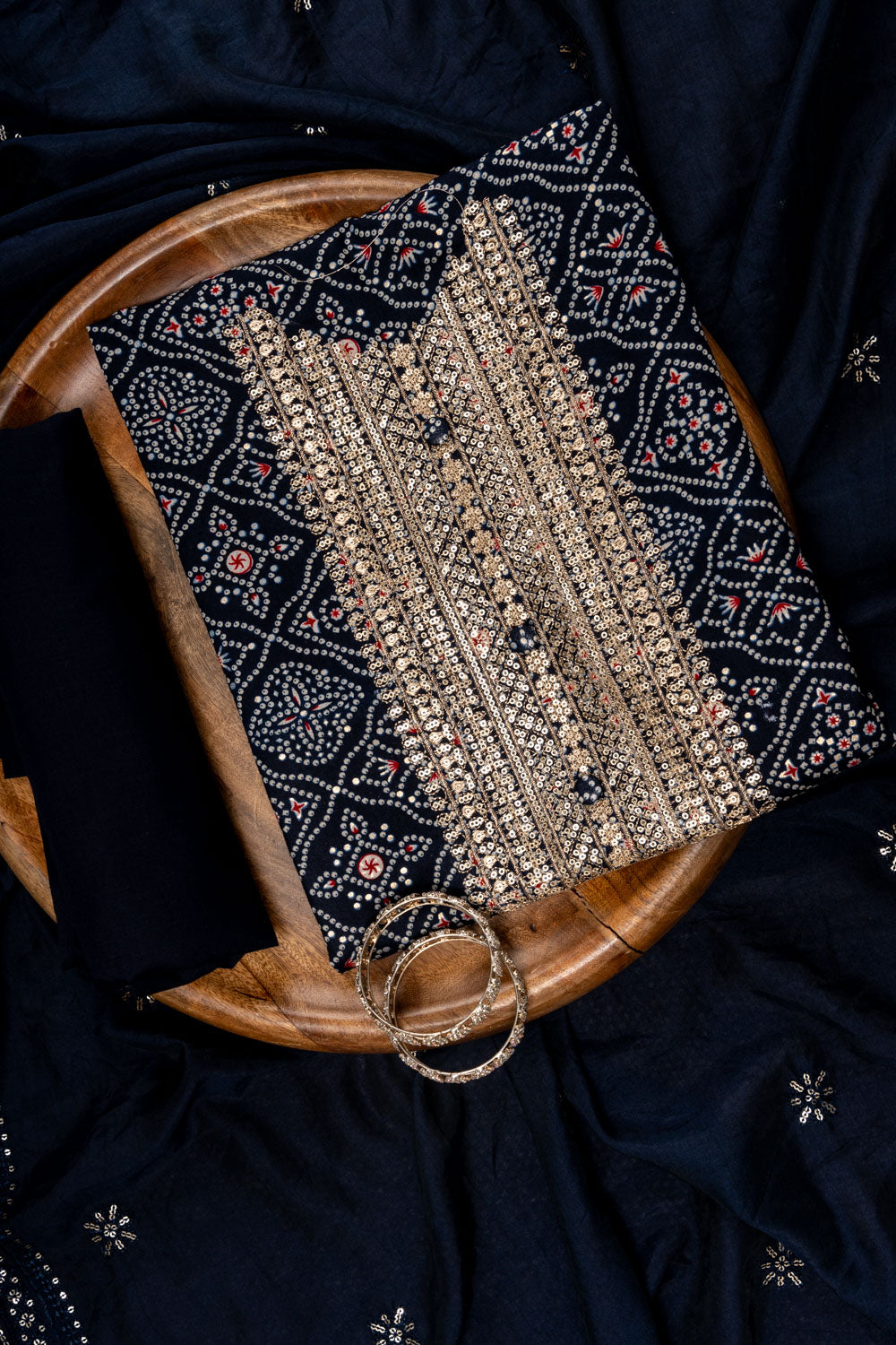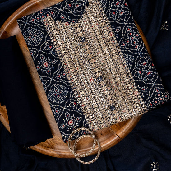 Panna Black Sequence, Zari Threadwork & Bandhini Printed Cotton Unstitched Salwar Suit With Cotton Dupatta