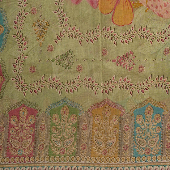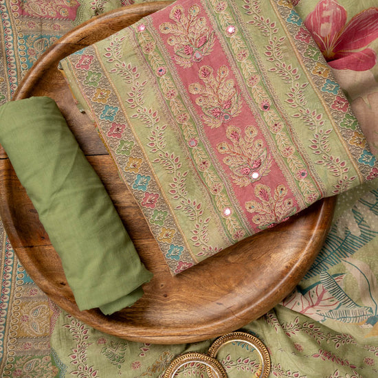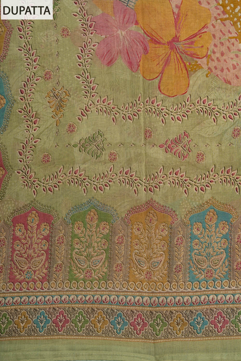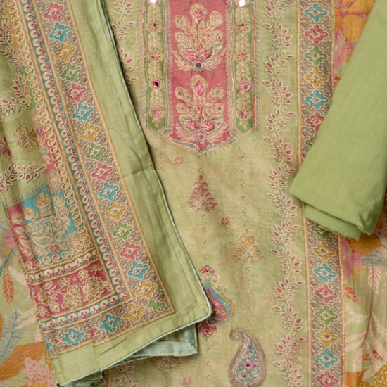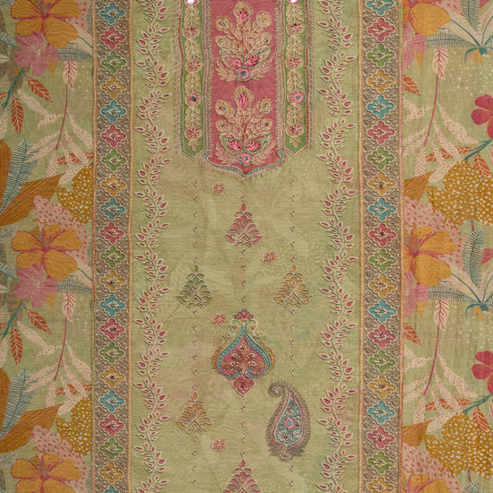 Panna Pista Swarovski, Mirror, Threadwork & Digital Printed Georgette Unstitched Salwar Suit With Georgette Dupatta