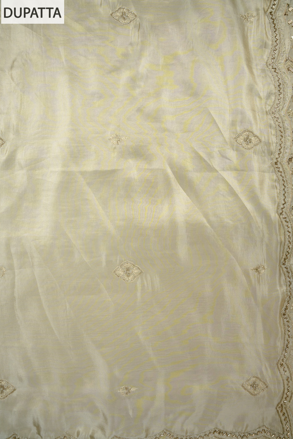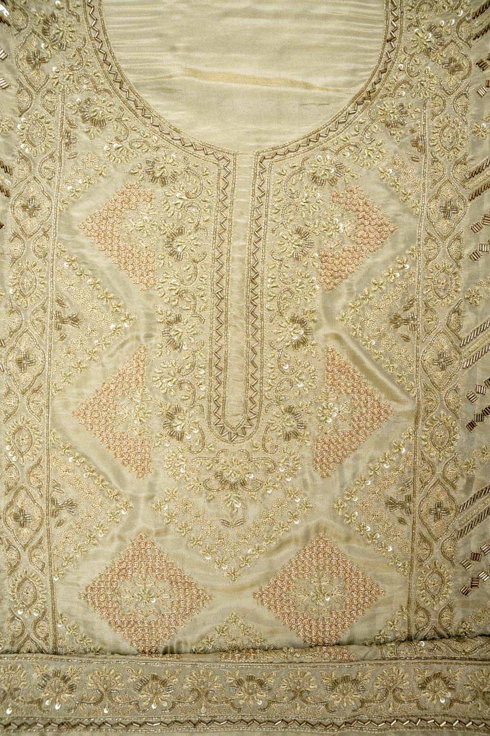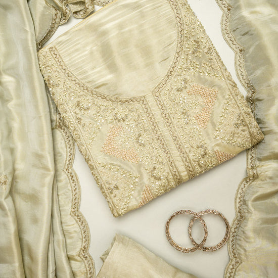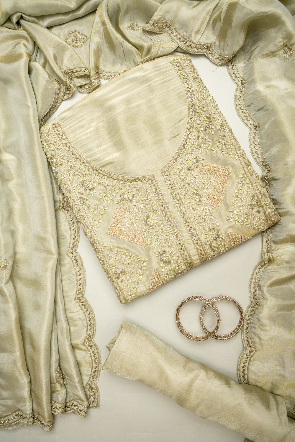Panna Effortlessly Elegant Olive Organza Unstitched Salwar Kameez With Organza Floral Dupatta