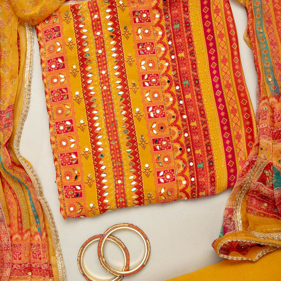 Panna Sunshine Charm Mustard Crepe Unstitched Salwar Kameez & Chiffon Dupatta
