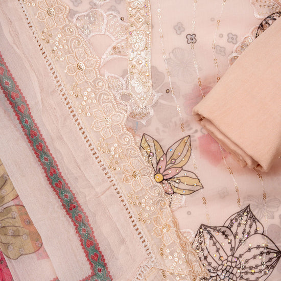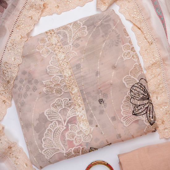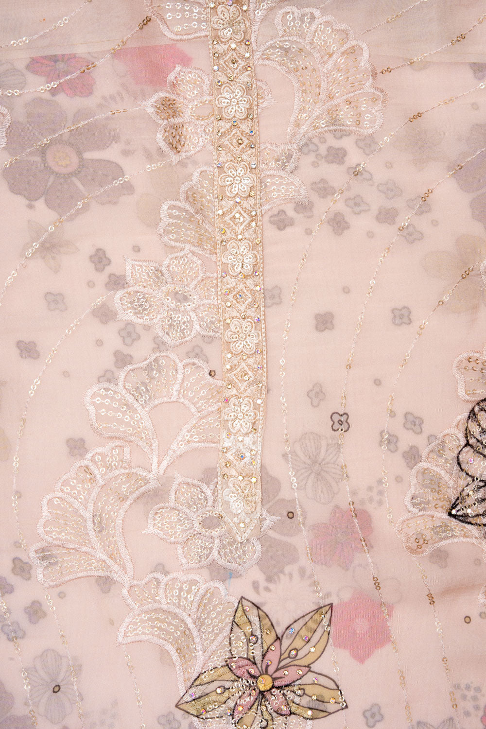 Panna Peach Georgette Unstitched Salwar Suit With Chiffon Dupatta