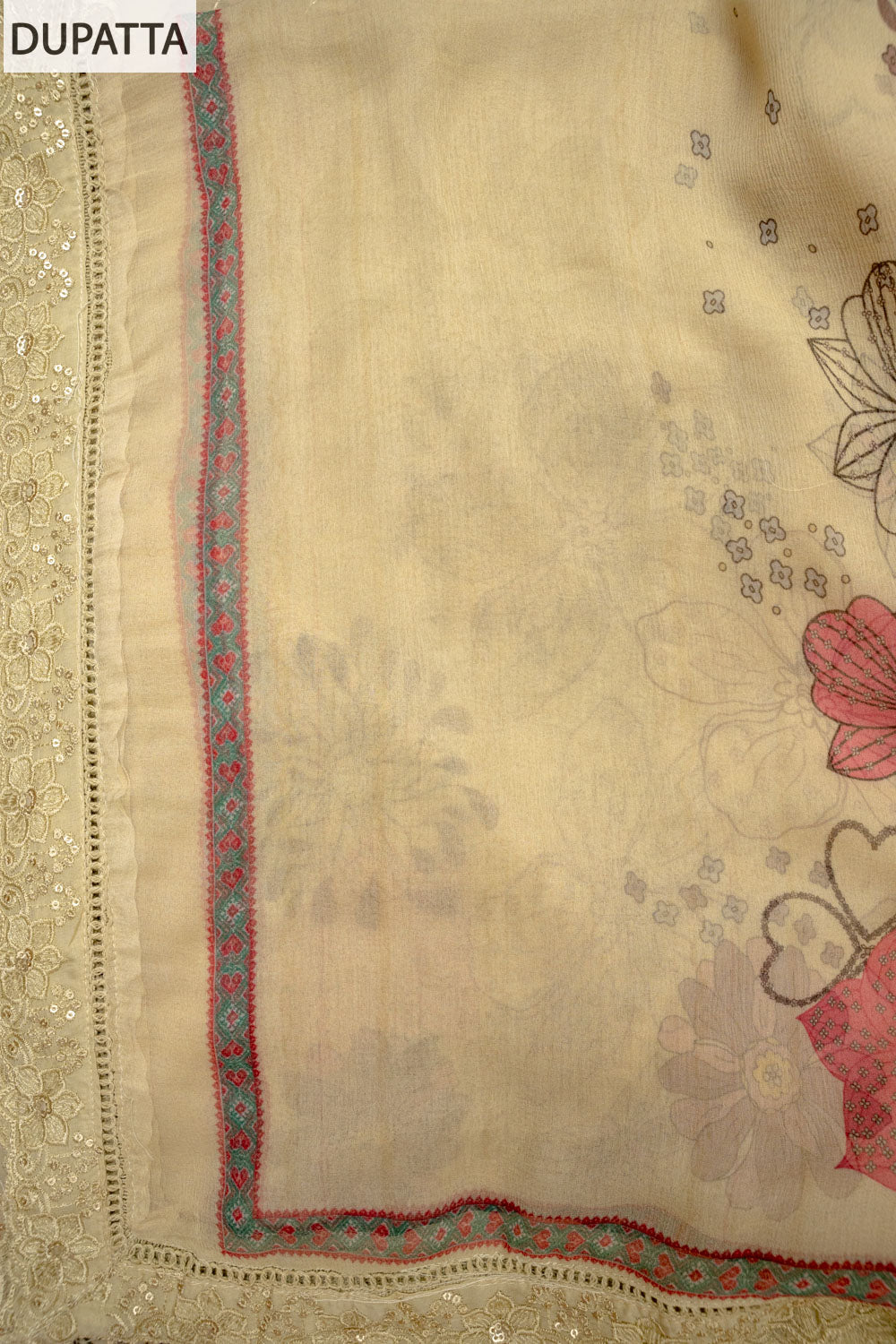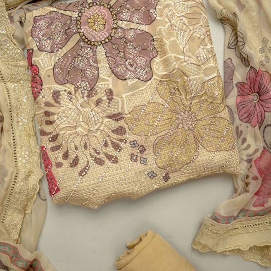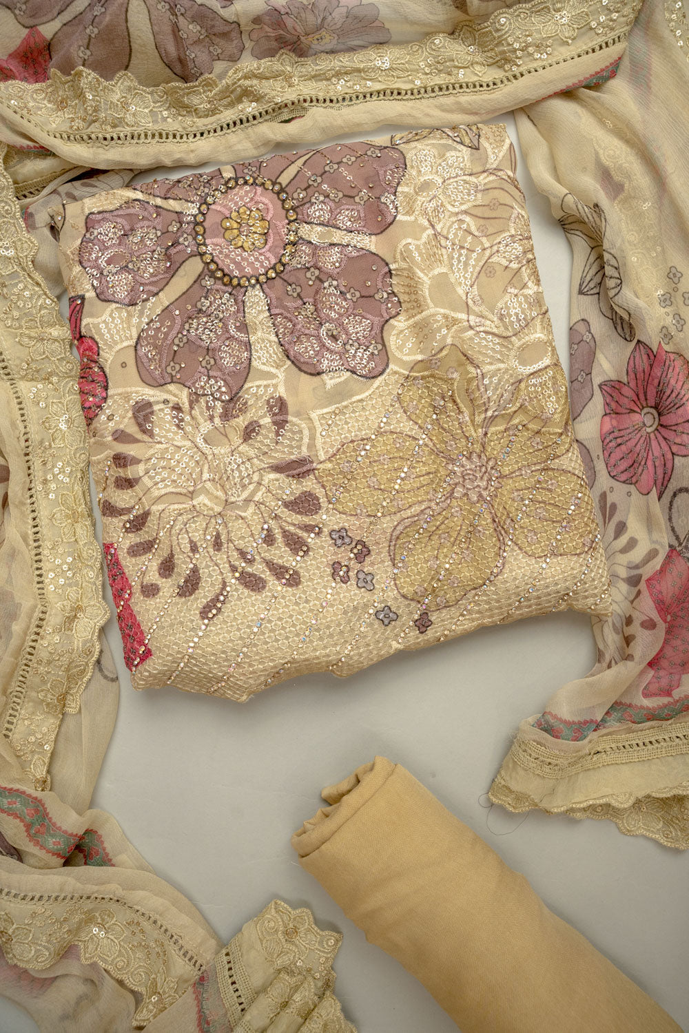Timeless Beauty Tussar Georgette Unstitched Suit With Chiffon Dupatta