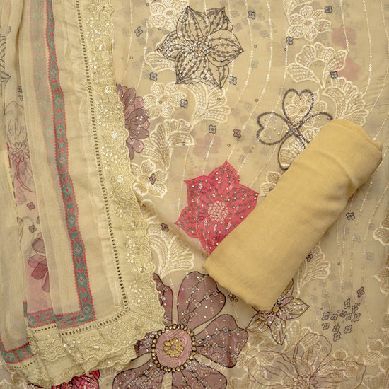 Timeless Beauty Tussar Georgette Unstitched Suit With Chiffon Dupatta – The Panna Shop